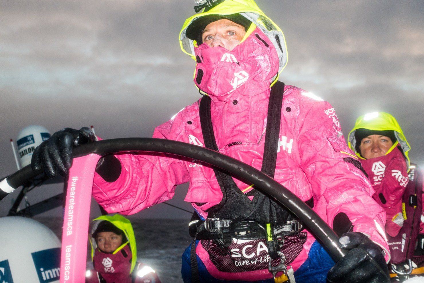 SCA qui a endommagé l’un de ses gennakers en début de semaine souffre d’un manque de vitesse. Les filles ne peuvent faire la route optimale et vont encore perdre du terrain sur les leaders dans les heures à venir. Elles sont à 253 milles de Team Alvimedica. Elles naviguent avec une voile plus petite à l’avant, le J1. Ce n’est pas la bonne voile dans les conditions actuelles. Quand le paquet de tête fonce à 25 nœuds vers le Horn, les filles doivent se contenter d’une vitesse moyenne à 16 nœuds.
