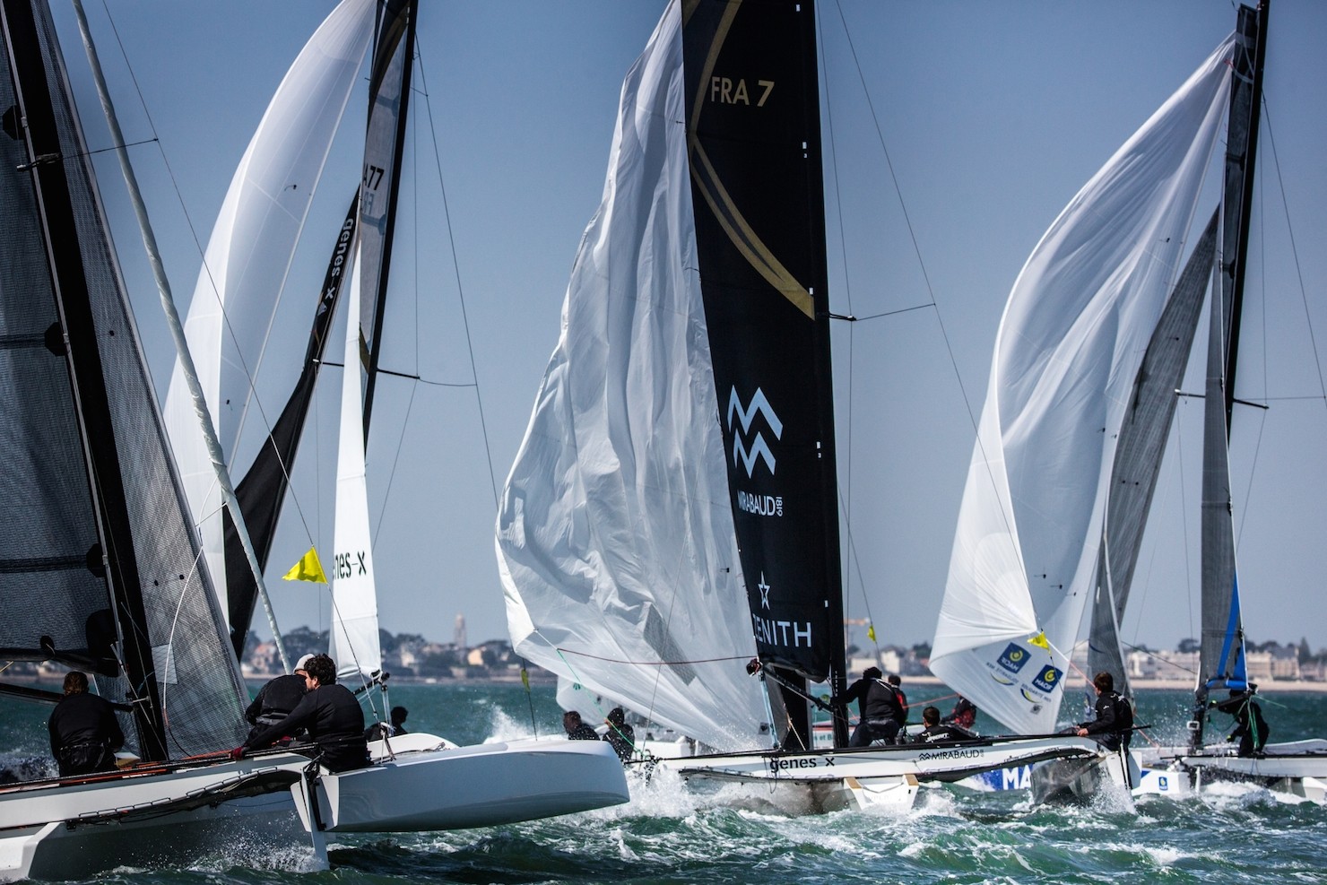 Derrière, Spindrift Black (Xavier Revil) commet une petite erreur de manœuvre sur le dernier bord et cède alors sa place de deuxième à Groupama (Pierre Pennec). « Nous perdons notre deuxième place aujourd’hui dans les 50 derniers mètres, à cause d’une erreur que nous n’avons pas le droit de faire sur ce type de bateaux : le bout d’enrouleur de gennaker était mal bloqué dans le taquet, celui-ci s’est alors déroulé à cause du vent, nous faisant perdre de la vitesse. On perd une place sur la manche qui nous coûte également une place au général. C’est le jeu mais ça fait mal, d’autant plus que nous avons été deuxième pendant tout le championnat » confie Xavier Revil à l’arrivée. A noter que les deux équipages terminent à égalité de points (32 points) et ont été départagés en fonction du nombre de manches gagnées sur l’ensemble de l’épreuve.