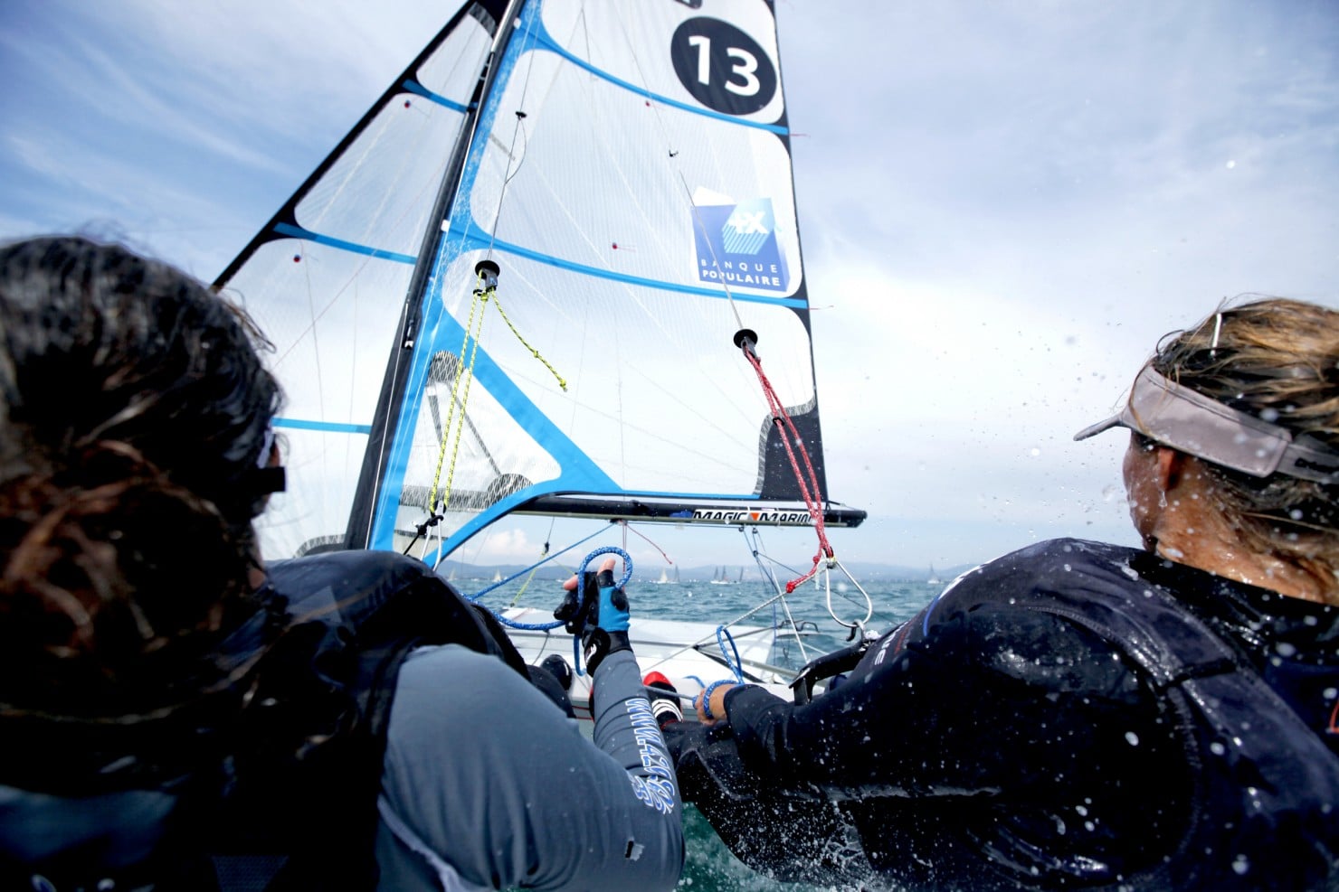 Ce jeudi, pour la deuxième journée des régates de l’ISAF Sailing World Cup Hyères – TPM, le vent et le soleil ont répondu présents. Dans un vent qui s’est renforcé jusqu’à 18 – 20 nœuds, l’ensemble des régates se sont succédées à un train d’enfer. L’intensité est montée d’un cran pour tous les compétiteurs, preuve de la présence de l’élite mondiale de la voile avec les 40 meilleurs bateaux de chaque série.