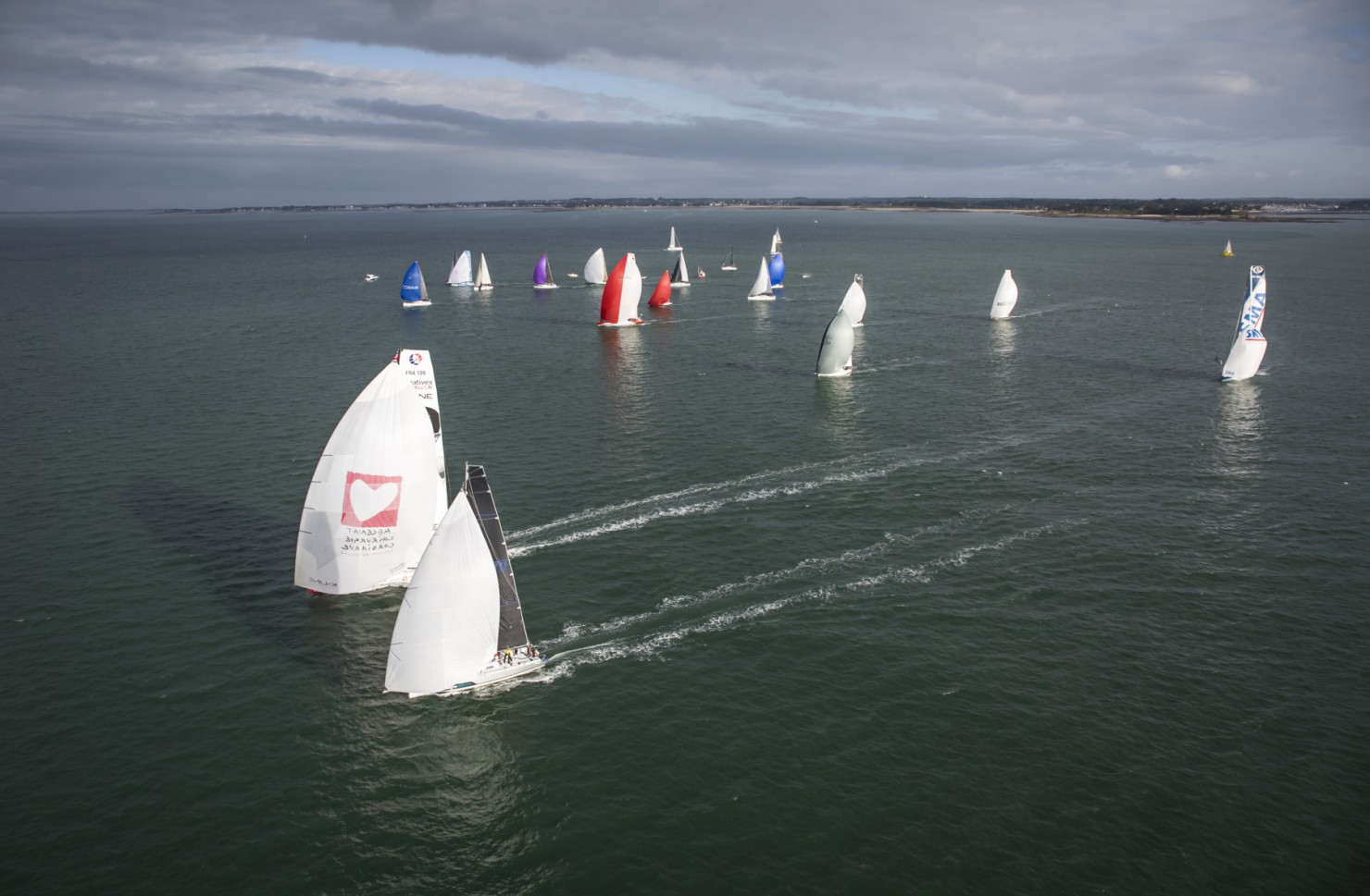Les deux Imoca de la flotte (SMA et Initiative Cœur de Tanguy de Lamotte) ont bataillé bord à bord depuis le départ. Au large de Penmarch, le duo Meilhat/Desjoyeaux (embarqué à bord de l’Imoca SMA) a pris l’avantage.