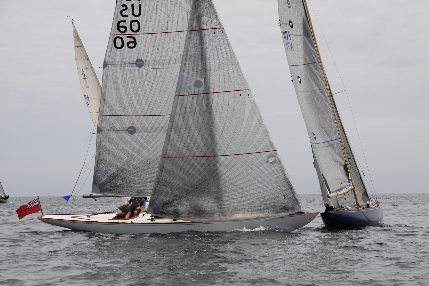 La Division des Classiques a aussi connu des grands changements de position tant en course qu’au général avec ce soir Llanoria US83 à Peter Hoffmann, qui avait remporté le Medaille d’Or aux Jeux Olympiques en 1948, et qui est skippé cette semaine par Eric Jespersen, et Titia GBR 22 à Andy Postle, dont l’architecte en 1952 était David Boyd, qui se retrouvent a égalité en tête avec seize points. En troisième place, cinq points derrière eux, on trouve Lars Guck sur Flapper N71, qui a gagné le médaille d’argent au dernier Championnat Mondial dans la Division des Classiques en 2013. Lars détient toujours l’espoir de pas être la demoiselle d’honneur cette fois, mais avec deux manches restantes, il va devoir se frayer un chemin difficile pour prendre la plus haute marche du podium. Comme disait Andy Postle de Titia après les régates, <<C’était une journée difficile au bureau, et ça va être une journée encore plus difficile au bureau demain !>>