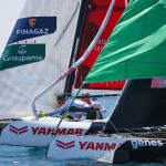 « On passe deuxième à la troisième bouée, on choisit de partir au large parce qu’on estime que la quatrième bouée mouille au large et qu’il y a, là-bas, un autre vent. A la montée, on avait navigué très près de la plage, et on estimait qu’en allant au large, on aurait le vent du large. On a espéré qu’à un moment l’autre groupe taperait dans une zone de transition pour aller retourner au large. Ça n’a pas été le cas : c’est le vent de la plage qui a prédominé, et on est passé derrière. Une fois qu’on avait choisi, il était déjà trop tard, et notre choix était fait avant le départ. On prend notre première « bâche », c’est une vraie bâche et elle n’arrive pas vraiment au bon moment. Ca fait beaucoup de points perdus sur nos deux concurrents directs. C’est le sport… On va se battre point par point pour gagner le Tour parce qu’on est venu pour ça. »