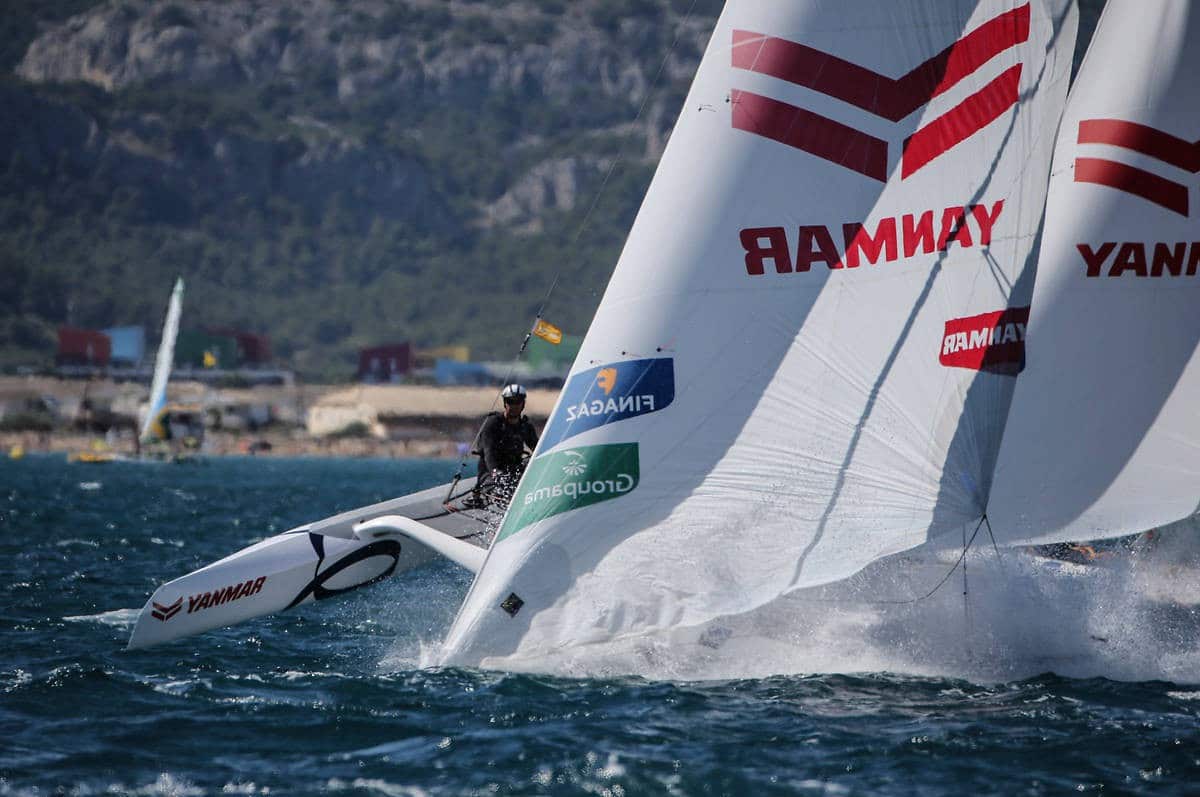 « Finalement, c’est une belle journée pour nous. Nous n’étions pas très contents de nos prestations, mais les autres ont été moins bons que nous. Les jeunes de Vannes Agglo ont très bien navigué, Spindrift aussi, et nous prenons un point d’avance supplémentaire au classement général. Les vents étaient très instables, c’était très dur, la tramontane n’était pas bien installée, il y avait tantôt du vent, tantôt plus du tout. Tactiquement, ce fut très dur, ça a pas mal brassé. On fait une mauvaise manche, mais d’autres ont dû en faire autant que nous. On conclut par une super finale, pour prendre la troisième place du jour. On s’en contente largement. Spindrift reprend deux points et va se battre un peu avec Groupama. Nous, nous allons continuer à naviguer jour après jour. On attendra la fin pour compter les points. »