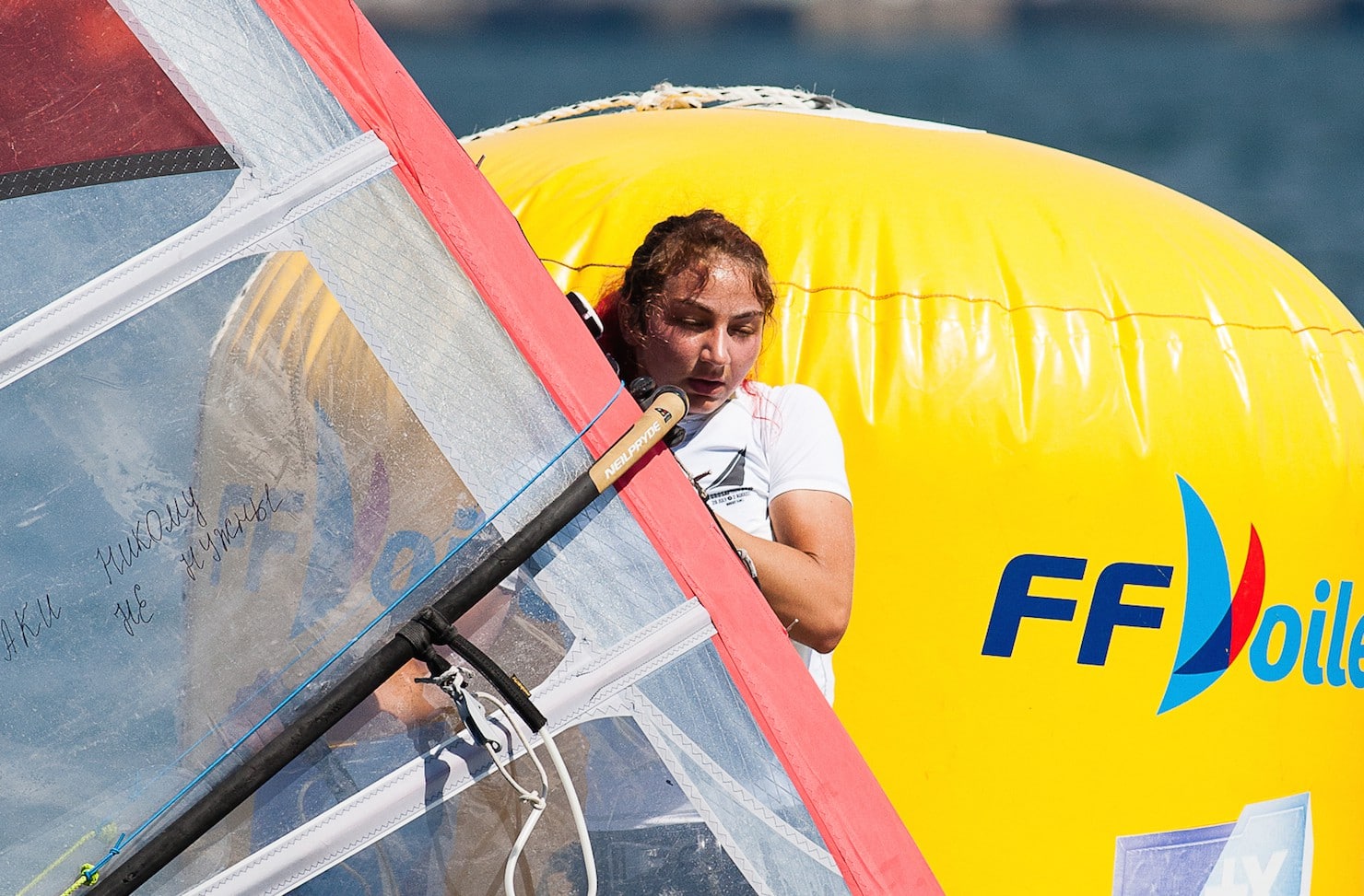 Le rond des RSX, 29er et SL16 a dû à nouveau mouiller un parcours pour courir la deuxième course du jour pour les RSX puis la troisième pour les 29er et les SL16 dans les meilleures conditions possibles.