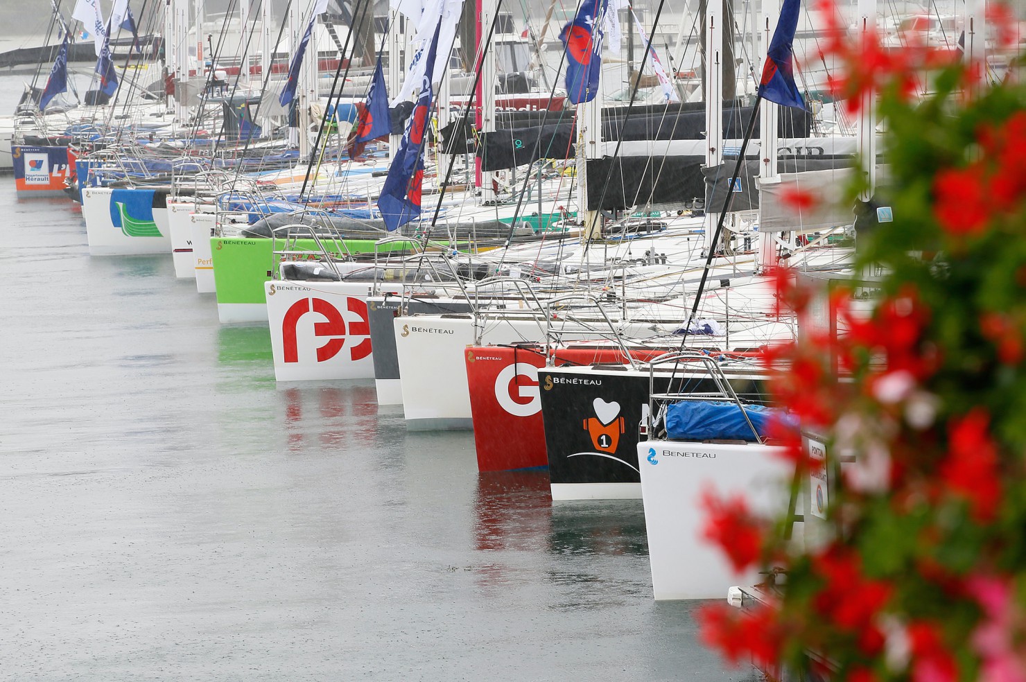 Cet après-midi, à Lézardrieux, les skippers lézardent, au chaud, mais derrière les vitres, à l’abri d’une pluie diluvienne et de belles rafales. Un premier front passe cet après-midi sur Bréhat. 35 nœuds établis, des rafales violentes : pas question d’envoyer une course dans de telles conditions.