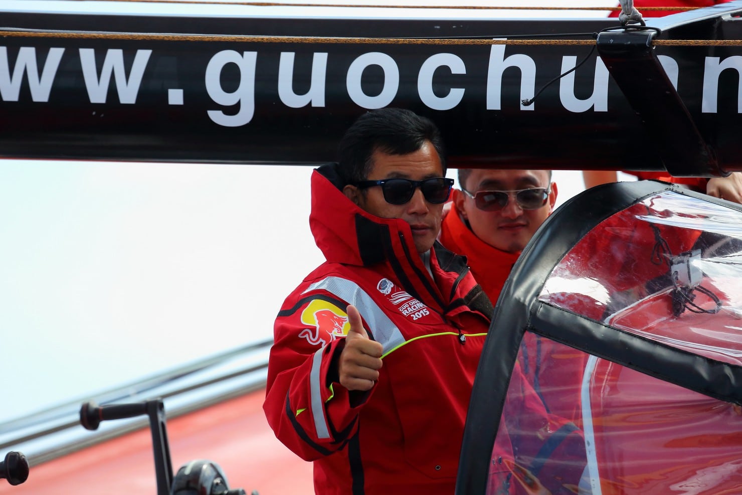 Jeudi était une journée de commémoration en Chine pour marquer le 70ème anniversaire de la victoire et de la fin de la Seconde Guerre Mondiale, Guo Chuan a tenu à exprimer ses sentiments de la manière suivante lors de cette cérémonie de départ. “Nous avons décidé il y a longtemps de nous lancer dans ce défi de l’extrême le 3 septembre, car notre spécialiste météo estimait que cette date nous offrirait les meilleures conditions de navigation. Mais prendre le départ lors d’une journée de souvenir aussi importante donne un autre sens à notre voyage. En tant que seul ambassadeur du mouvement pour La Paix et Le Sport, j’espère que notre record du monde transmettra un message de paix et de sport ! à encore plus de gens.”