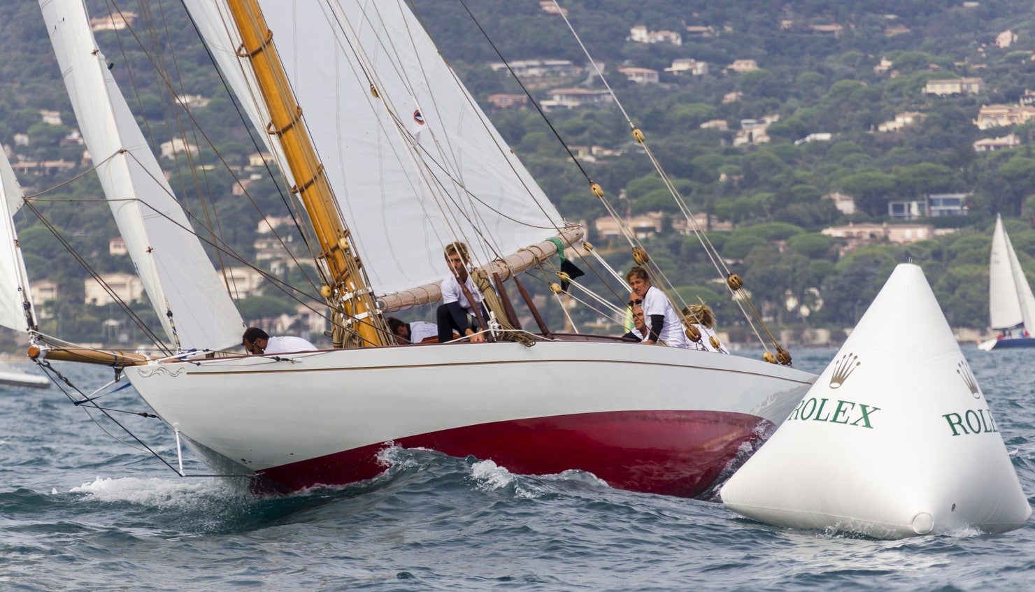 Foc à l’avant, grand voiles hautes mais dépourvues de ses voiles de flèche, la grande goélette Elena (Herreshoff 2009) n’aura fait qu’une bouchée des 17 miles d’un grand triangle au départ et à l’arrivée du Portalet, via les Issanbres, proposé aux grands yachts classiques. Les plus petites unités empruntaient, elles, le même parcours mais se voyaient dispensés de l’aller-retour travers au vent imposé aux grands auriques. La mer considérablement aplanie depuis le coup de vent des deux derniers jours favorisait la vitesse et les petits auriques. Oriole, Nan of Fife ou Chinook s’en donnaient à coeur joie, en quête de vitesse et de glisse, quasiment bord à bord.