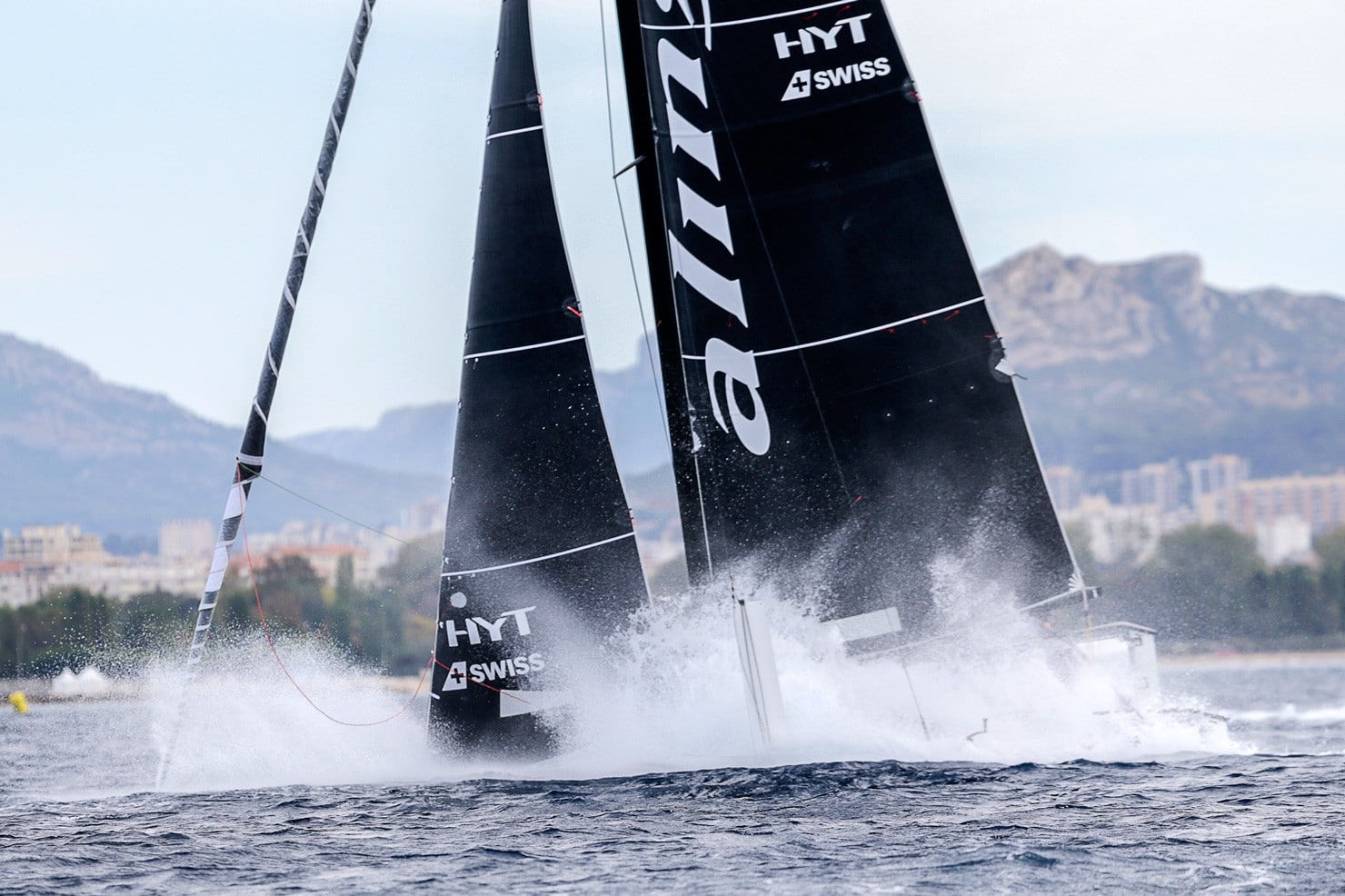 Après le vent léger des jours précédents, Morgan Larson se préparait pour la bataille avec Spindrift racing et Sultanate of Oman, car les deux étaient suffisamment proches au classement général pour prendre la victoire à l’équipe Suisse à Marseille.