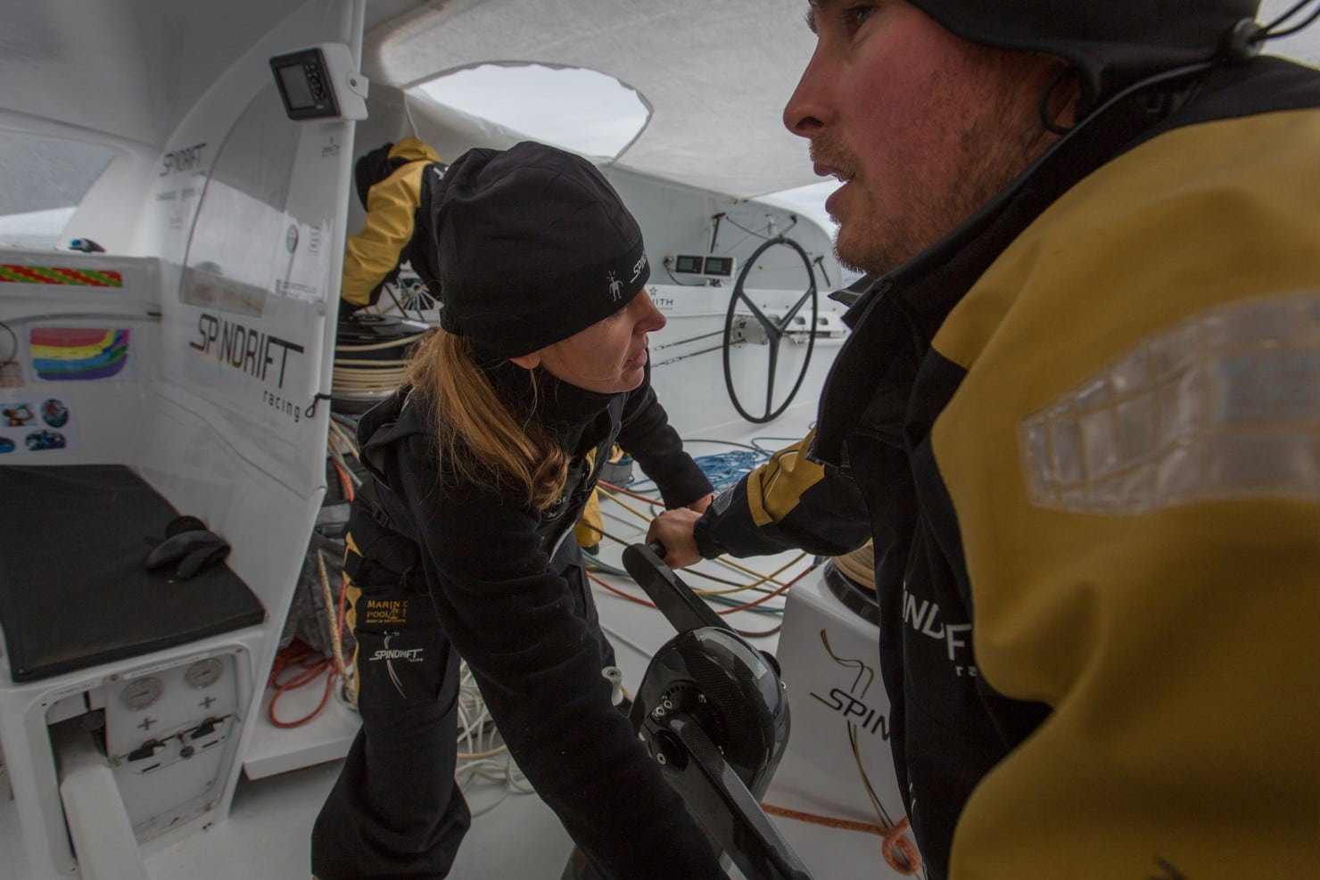 La température extérieure a chuté, l’eau est désormais à 3 degrés. Pas de doute, nos 14 marins sont bel et bien dans les mers du sud… Depuis 24h que Spindrift 2 navigue dans l’Ocean Indien, le skipper Yann Guichard et le navigateur Erwan Israël, (aidés par Jean-Yves Bernot, leur routeur) doivent adapter leur route en tenant compte de la présence d’icebergs signalés dans le secteur. Aussi fascinants que dangereux pour qui s’aventure à ces vitesses sur un bateau en carbone, les étraves du trimaran n’ont heureusement pas croisé leur route. A 16:00 GMT, Spindrift 2, coincé entre les hautes pressions et les icebergs, tire des bords de portant dans du vent de secteur ouest de 15-20 nœuds et affiche une avance de 26 milles sur son adversaire virtuel. Demain le vent devrait se renforcer.