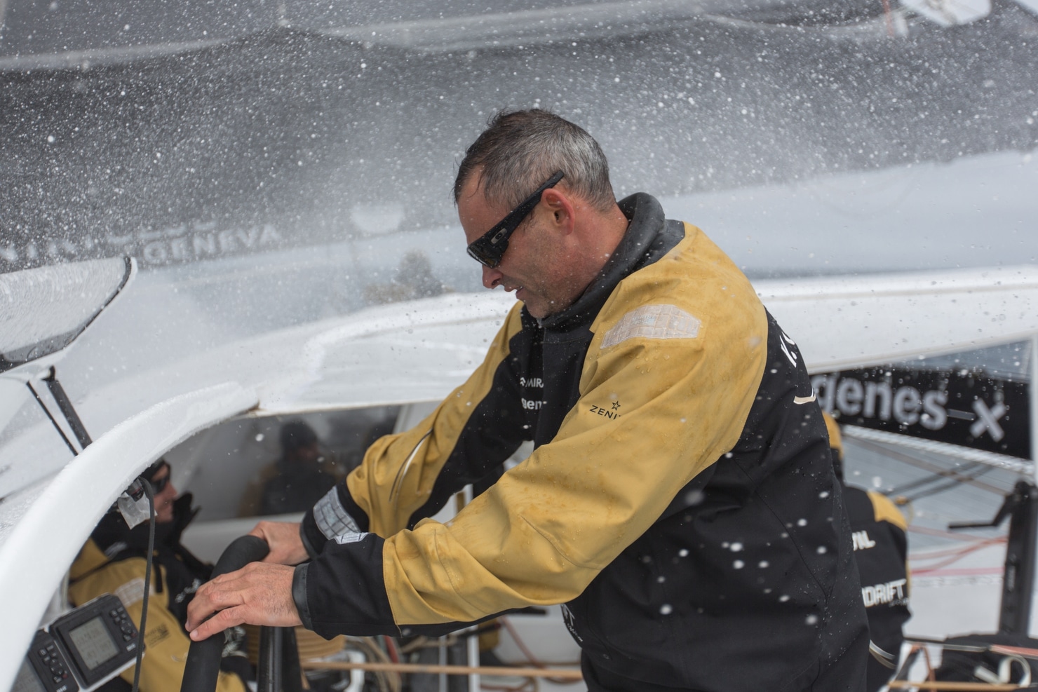 Maintenant que les icebergs et les Kerguelen sont dans le sillage, le trimaran Spindrift 2 a replongé vers le Sud. En plein océan Indien, sur la route du Cap Leeuwin encore distant d’un millier de milles, le vent d’Ouest-Nord Ouest reste maniable, autour de 25 nœuds, alors qu’une dépression relativement creuse venue de Madagascar approche. Suite à l’endommagement du foil bâbord (dans la partie basse), survenu hier après-midi lors d’un choc avec un objet flottant non identifié, les marins ont réussi non seulement à maintenir un rythme soutenu avec la machine, mais aussi à réparer une petite fuite sans gravité, en allant opérer à l’intérieur du flotteur de carbone. Désormais de retour sous le 50e degré Sud, l’équipage affiche une vitesse de ‘croisière’ au-dessus des 31 nœuds depuis 15h00 cet après-midi. Sur la route de référence du détenteur, les trajectoires sont assez proches, avec trois empannages chacun depuis l’archipel austral et un gain de près de 90 milles pour Spindrift 2 qui possède actuellement 220 milles d’écart avec Banque Populaire V.