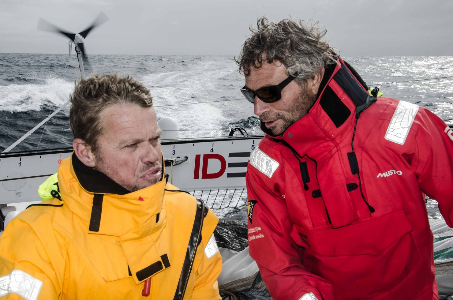 « Comme prévu, nous accélérons progressivement » explique Bernard Stamm. « Ce n’est pas encore l’heure des longues glissades. Le vent souffle plutôt en travers du bateau, et il oscille beaucoup en force, entre 10 et 20 noeuds. A chaque survente, le bateau « lève la patte », et grimpe sur un patin. Il faut être très vigilant à la barre et aux écoutes! C’est sportif, mais on ne se plaint pas après les deux jours de petits temps que nous venons de traverser. »