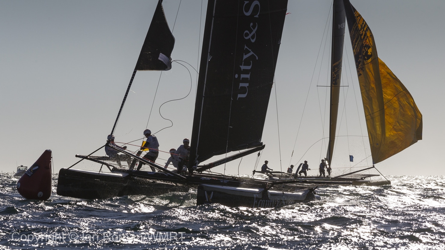 Sous le soleil australien et sur une mer moutonneuse, l’élite mondiale a enchaîné des parcours techniques et extrêmement sportifs à quelques dizaines de mètres du rivage. Il fallait de la force mentale et physique pour franchir une à une les étapes. Après les sélections en flotte, l’équipage de Yann Guichard tient le rythme intense des duels, s’imposant 3,5-1 face à Keith Swinton (AUS) en huitièmes de finales puis 3-1 devant Murray Jones (AUS) en quarts. Les hommes de Spindrift racing accèdent alors aux demi-finales où ils affrontent le Suédois Hans Wallèn. Celui-ci l’emporte et entre en finale où il s’incline ensuite devant le numéro 1 mondial, Ian Williams (UK), vainqueur à Fremantle. Yann Guichard gagne lui sa ‘petite finale’ l’opposant au Danois Nicolai Sehested avec 2 victoires à 1, permettant ainsi à Spindrift racing de compléter le podium de l’étape australienne.