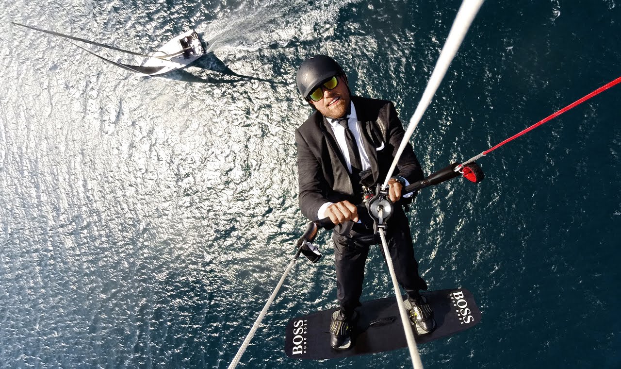 Après avoir marché sur sa quille. Après avoir marché sur son mat. Alex Thomson s’est offert un nouveau délire marketing : s’envoler en kitesurf au-dessus de son IMOCA. Pari réussi et de belle manière.