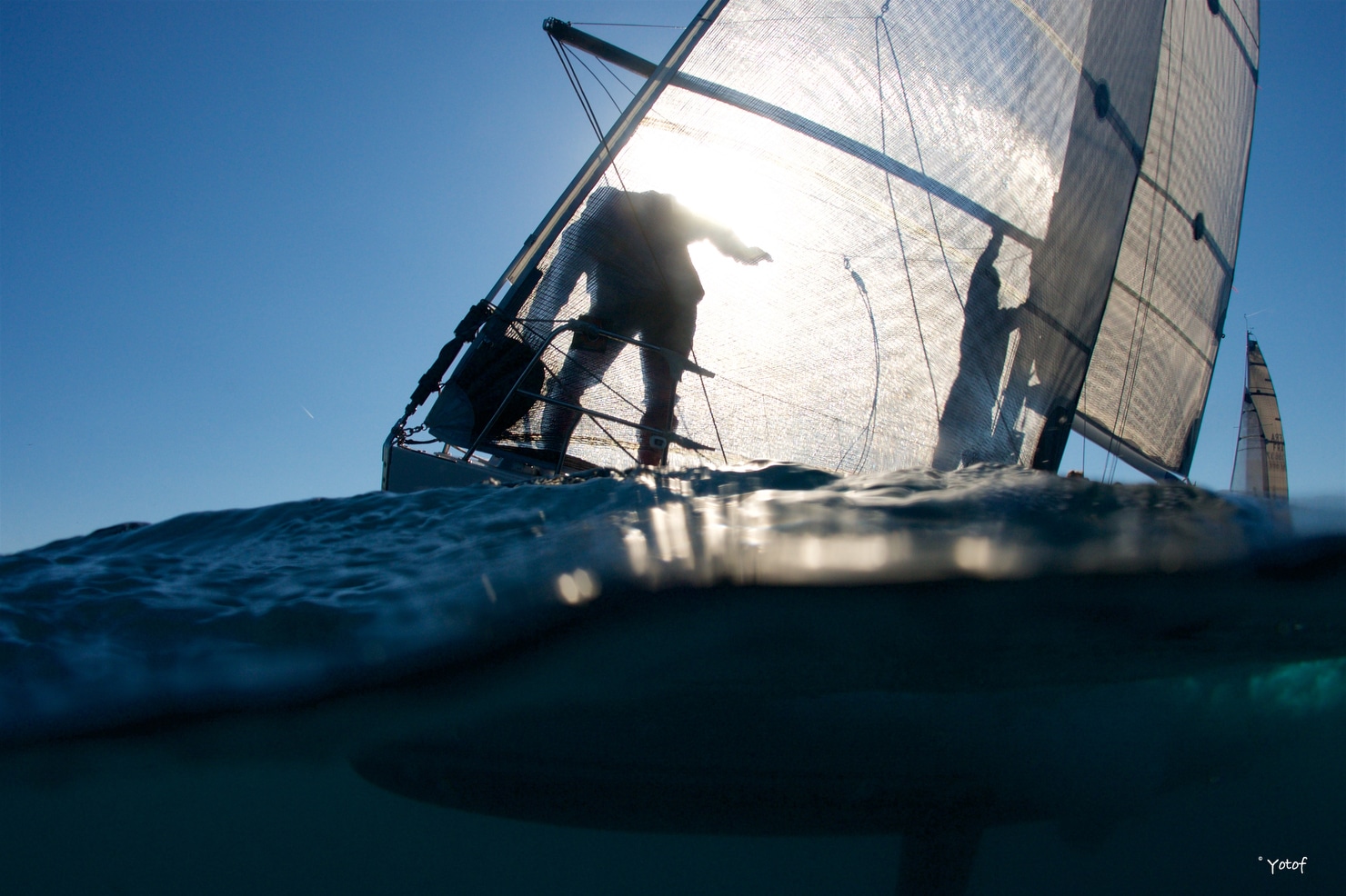 Grand soleil ! Les quarante nœuds, le froid et la houle qui ont battu les bateaux toute la nuit sont oubliés, effacés par le ciel bleu, et on regretterait presque que le vent soit si timide en cette matinée printanière. Les bateaux piaffent derrière les bouées et attendent le départ qui recule et recule encore, faute d’air. À midi le go est enfin donné, le thermique se lève et se stabilise à 10-12 nœuds en Sud-Est. Georges Korhel, président du comité de course des IRC 4, raconte : “c’était une journée de rêve, avec des conditions comme la SNIM est capable d’en offrir. Nous avons pu envoyer trois manches dans l’après-midi, avec 43 bateaux sur l’eau ce qui est considérable : la ligne des bateaux faisait près de 550 mètres !» Pas d’accident à déplorer pour une flotte aussi importante, et pour cause ! Georges, qui est aussi le Principal Race Officer des Voiles de Saint-Tropez, poursuit : “Le niveau global est plutôt bon et assez homogène, et la mer était superbe, sans cette houle qui nous avait tant gênés hier.“