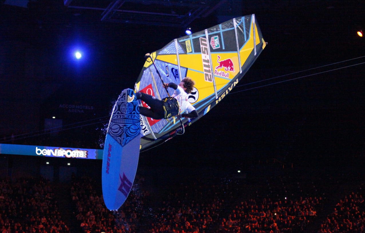 15 000 fans de funboard présents lors des deux soirées à l’AccorHotels Arena (le Palais Omnisport de Paris Bercy) les 1er et 2 avril, ont prouvé que Fred Beauchêne avait réussi son pari, 25 ans après avoir imaginé ce show insensé. Non seulement, l’ancien navigateur-aventurier n’a pas eu trop de difficultés à convier tous les meilleurs riders du monde à Paris, à commencer par l’équipe de France de funboard, mais les légendes que sont Robby Naish, Antoine Albeau, Erik Thiémé (venu là avec son fils Jimmy) ou Robert Territehau, ne se sont pas fait prier pour revenir naviguer sur ce spot artificiel – une gigantesque piscine bordée de 30 ventilateurs générant un vent de 20 à 30 nœuds, soit un bon force 6. Et pour la ville de Paris, candidate à l’organisation des Jeux olympiques de 2024, cet Indoor de France a été une belle occasion de montrer que l’on peut aller au bout de ses idées en imaginant un show totalement décalé.