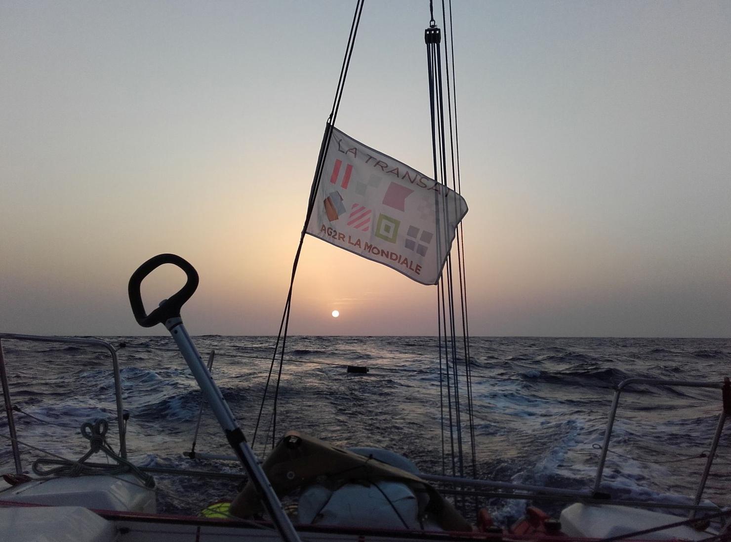 « Ça se passe bien. On tire des bords, on empanne au portant dans les alizés. On a eu la lune toute la nuit, c’est assez agréable. Nous sommes en t-shirt en train de barrer. C’est plus agréable la nuit car nous souffrons moins de la chaleur et du soleil. On a du mal à trouver de l’ombre la journée, on a des t-shirts à manches longues et des pantalons pour se protéger.