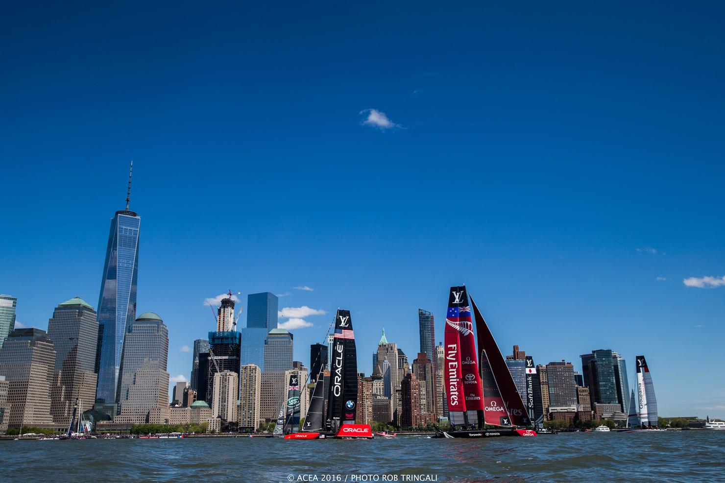 Si le décor, avec en toile de fond Manhattan et sa forêt de buildings, était magnifique, les conditions de navigation sur l’Hudson River ont donné du fil à retordre aux six équipages en lice sur ce deuxième acte des LVACWS 2016 ! Courant très fort et vent instable tant en force qu’en direction ont eu raison des régates de samedi. En revanche, trois belles manches ont pu se jouer dimanche permettant à l’équipe de France engagée sur la 35ème Coupe de l’America de décrocher son premier podium et, dans le même temps, à Emirates Team New Zealand de confirmer sa place de leader.