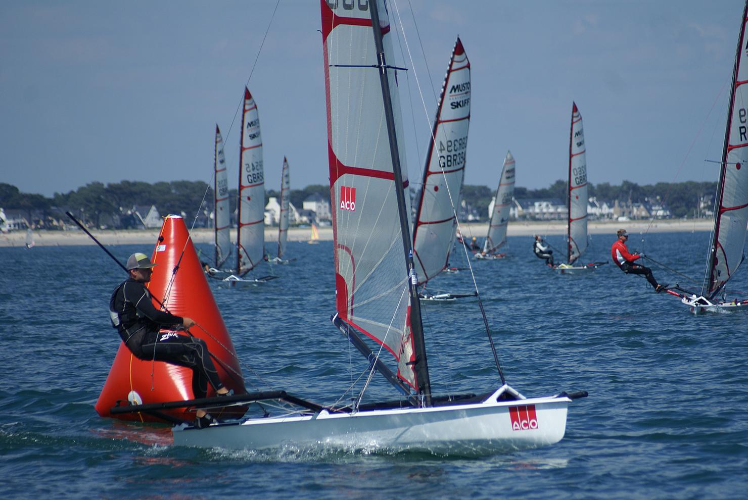 Aujourd’hui était le dernier jour du Championnat du Monde Mustoskiff-ACO au Yacht Club de Carnac. Les compétiteurs auront rencontré tous les temps durant cette épreuve. La semaine avait commencé par du petit temps et une forte chaleur puis s’est achevée par un temps plus frais et un vent assez fort allant jusqu’à 22 nœuds.