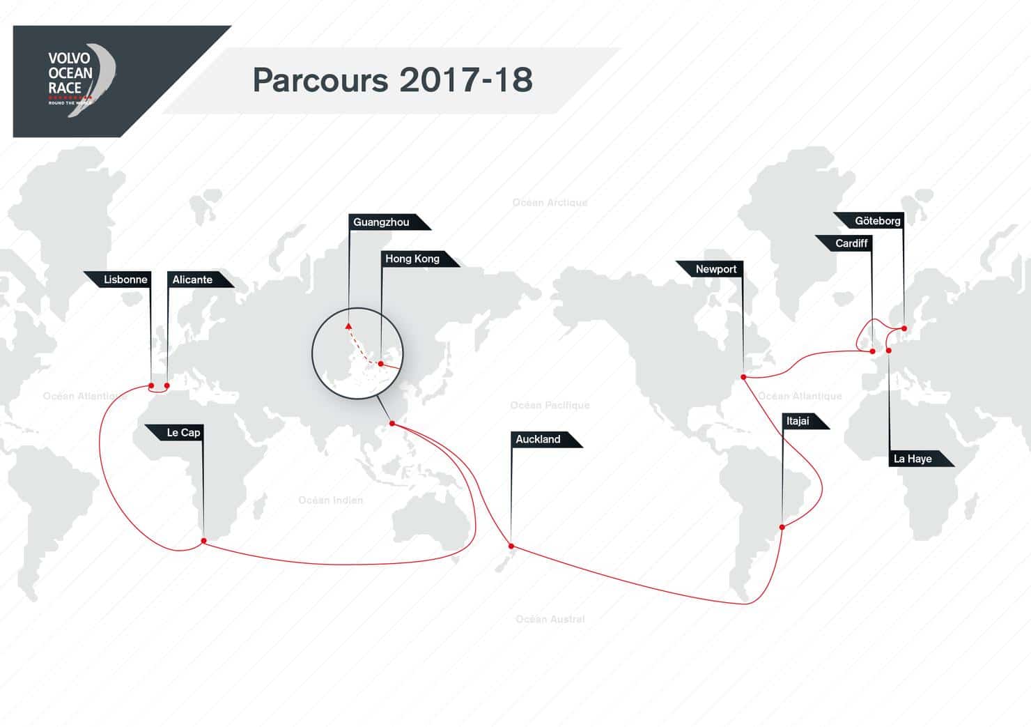 Après un ralliement (non comptabilisé au classement) jusque Canton en Chine où la flotte disputera une course in-port, les équipages partiront de Hong Kong pour s’élancer vers Auckland, en Nouvelle-Zélande. Les bateaux prendront ensuite le départ d’une étape qui les fera retourner dans le Grand Sud et parer le Cap Horn avant de remonter l’Océan Atlantique pour retrouver Itajai au Brésil.
