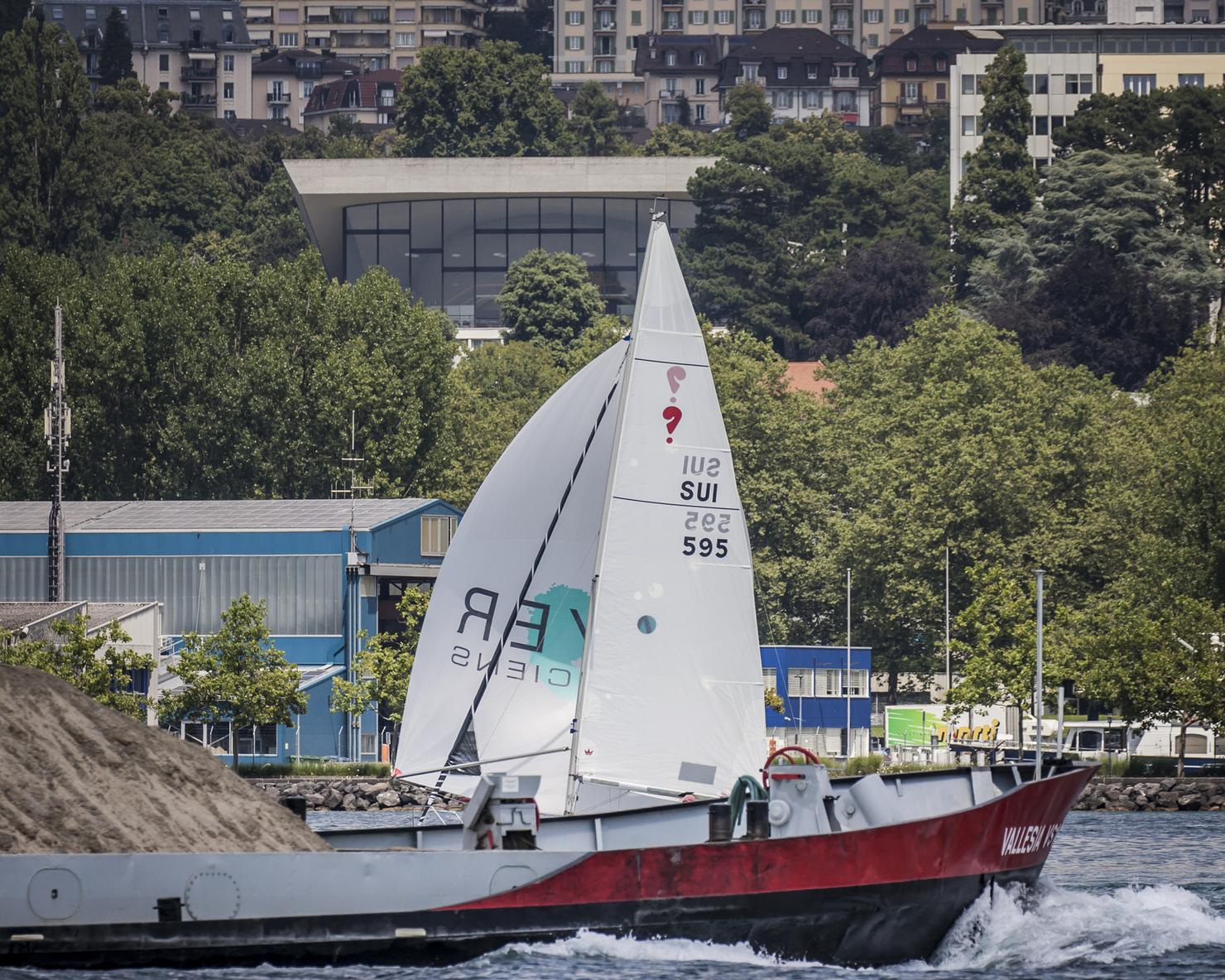 Derrière ce bateau, un groupe de sept poursuivant constitué de Brachard-Fou du Vent, CER Genève Aéroport, SRS1, Luna, Mayer Opticien, Girod Piscine et Espace Montage tente de revenir. Les conditions qui soufflent sur le plan d’eau permettent encore de tout imaginer, et de nombreux passages à niveaux sont à envisager.