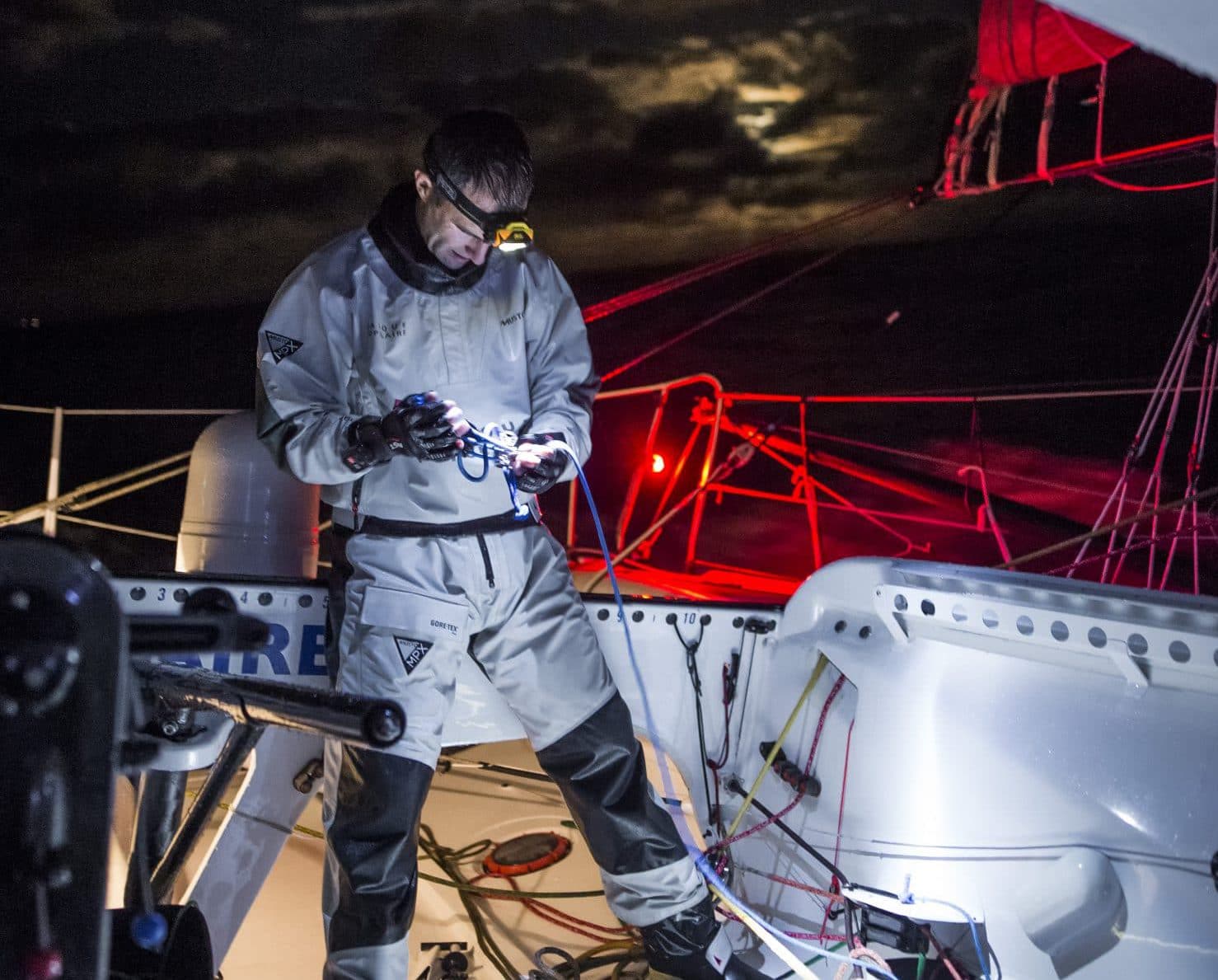 Dans le détail, tout à l’avant de la course, Armel Le Cléac’h et Alex Thomson évoluent un peu plus abattus environ 400 milles dans le Nord-Est des Kerguelen qu’ils doubleront par le Nord dans 24 heures. A la vacation, Armel Le Cléac’h explique que les conditions – 25 nœuds et mer relativement formée, route moins lofée – sont moins favorables pour que les foils fassent la différence. Ce qui explique que l’écart se stabilise avec Alex Thomson autour de 25 milles. Sébastien Josse, lui, signe la meilleure journée et reprend 30 milles aux leaders, alors que le duel de haute volée entre Jérémie Beyou et Paul Meilhat est toujours ultra serré aux 4e et 5e places, à environ 950 milles des deux meneurs. Environ 300 milles derrière eux, Yann Eliès a moins de vent et est donc un peu moins rapide.