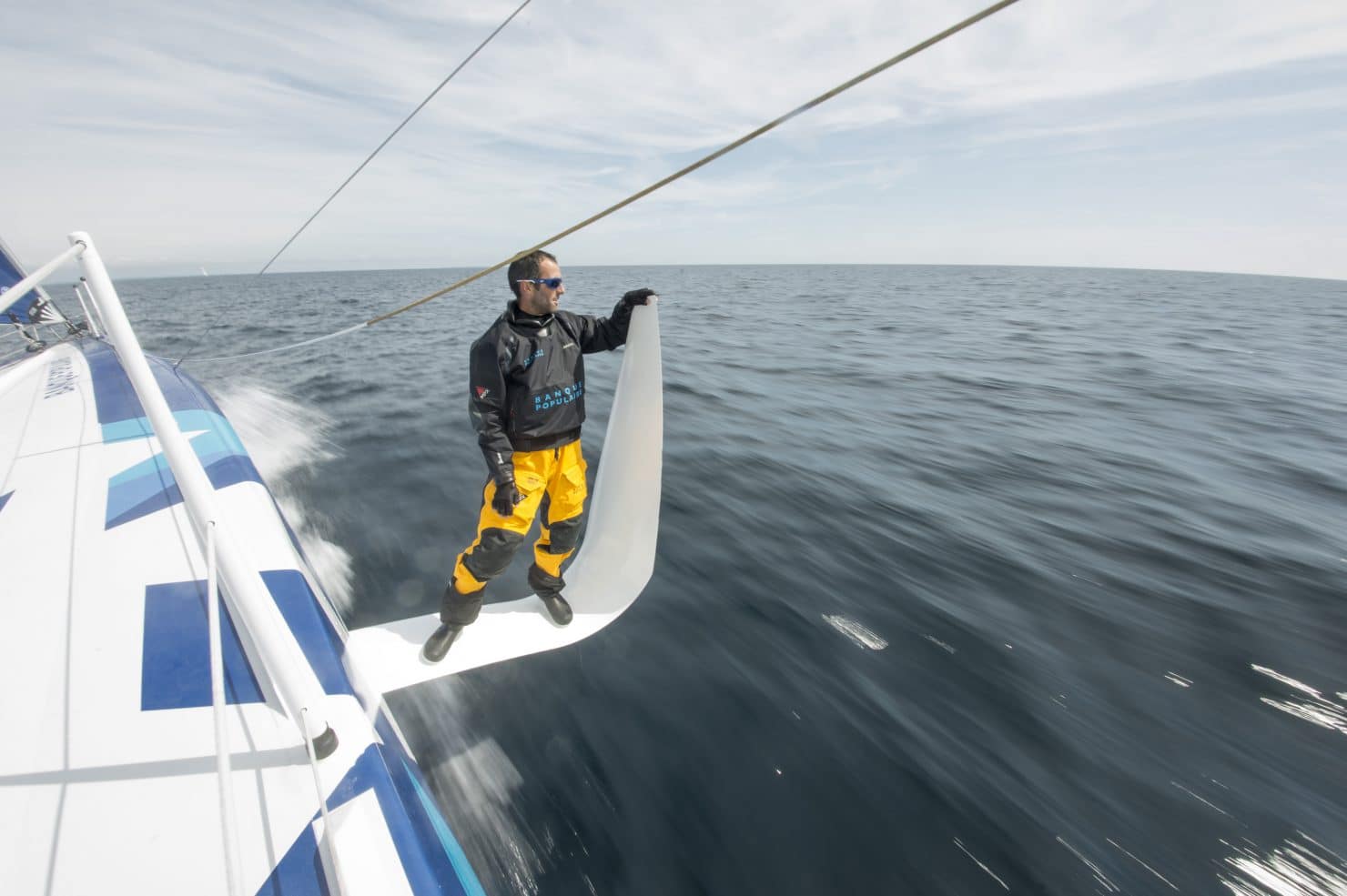 « J’ai des conditions variables avec du petit temps, parfois des grains et une houle assez désagréable. Mais j’avance un peu ce matin, ce qui est une bonne nouvelle après la pétole d’hier. Heureusement, car Yann et Jean reviennent comme des boulets de canon… Il faut que le bateau soit prêt pour finir. Bien régler, dormir, manger, encore régler le bateau et surtout ne pas paniquer malgré ceux qui reprennent du terrain derrière. »