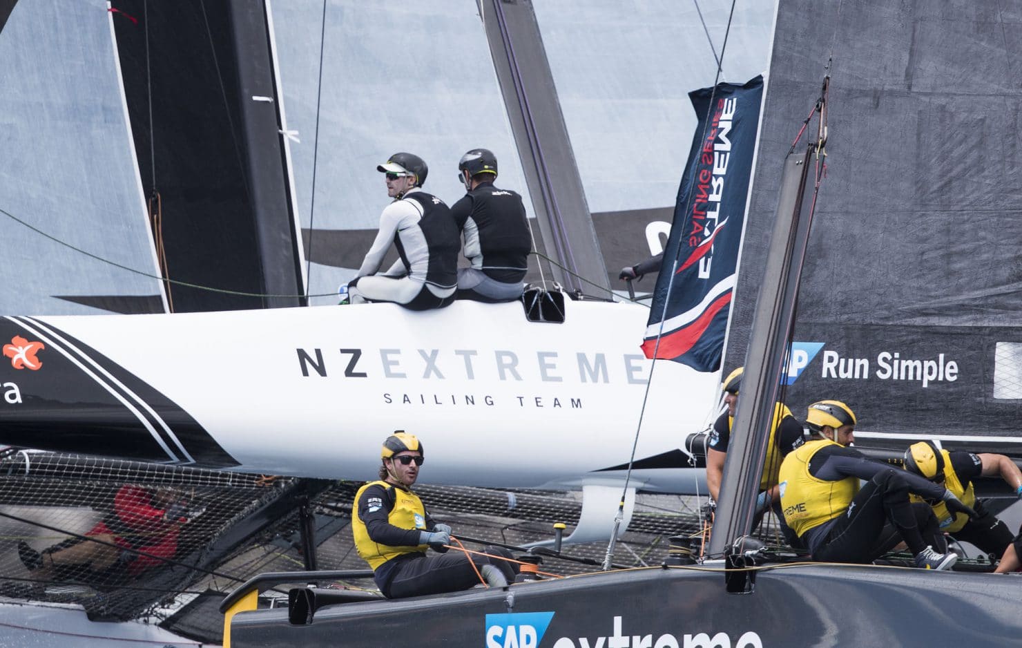 Après six courses courues dans des conditions changeantes, l’équipe danoise a réussi à sécuriser la victoire, mais avec NZ Extreme Sailing Team sur ses talons. Le syndicat Kiwi était bien en place au sommet du classement la majeure partie de la journée, battu au poteau sur la dernière manche. SAP Extreme Sailing Team entame la deuxième journée avec deux petits points d’avance.