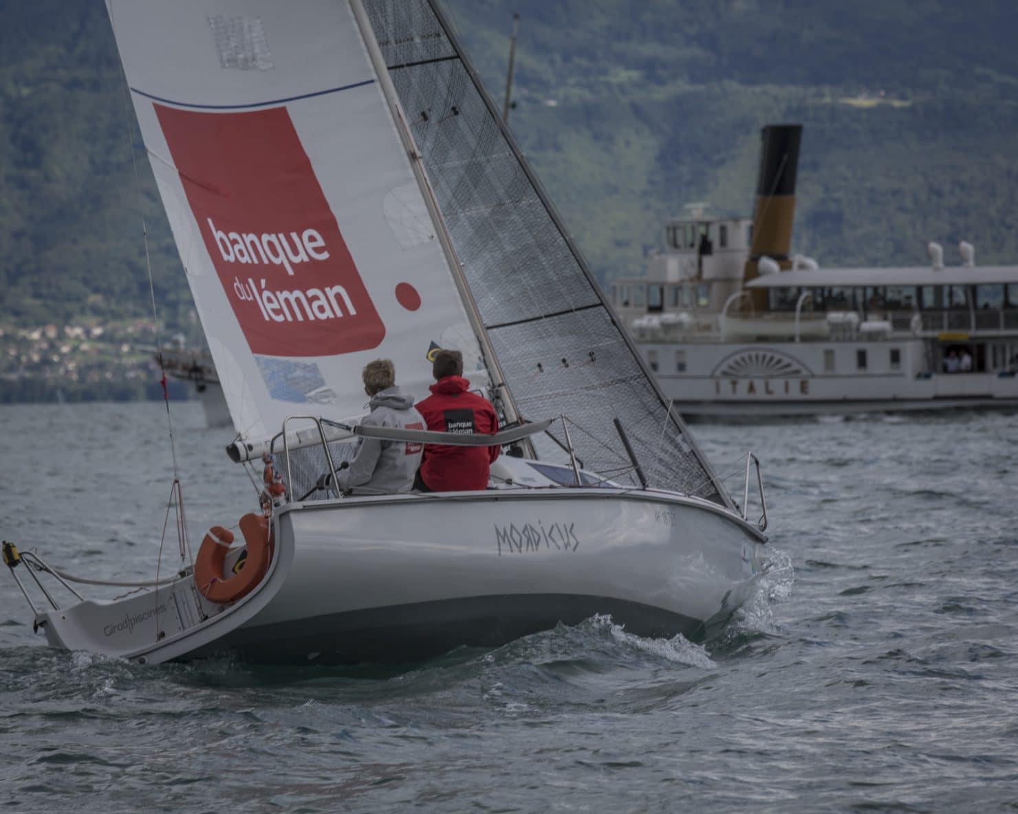Quatre tours bouclés en trois jours, c’est une édition rapide ! Mais les navigateurs ont pu souffler et sécher un peu ce mercredi, avec du soleil et des airs plus légers sur le lac. Des conditions plus clémentes qui laissent tranquilles les muscles des marins, mais jouent maintenant avec leurs nerfs : ils tirent de nombreux bords à la recherche de la risée qui leur permettra de décoller. Comme ont réussi Loris von Siebenthal et Eric Monnin (Le Crève Coeur) : solides leaders les premiers jours, ils sont désormais parvenus à distancer leurs poursuivants. Plusieurs duels et bagarres se jouent derrière : entre Tcheustékip et Mayer Opticiens pour la deuxième place, ou encore Califser by FS et aquama.ch juste derrière. Deux groupes bien compacts essaient de les recoller dans le Haut-lac. Des conditions plus estivales qui ont réussi à certaines équipes, notamment Waventin qui remonte six places en 24 heures (17ème), ou encore Banque du Léman, qui passe du 20ème au 14ème rang (classement complet ci-dessous). Mais il reste deux jours de course, où le classement peut être bien chamboulé !