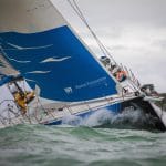 Avec un vent du Sud de 15-20 noeuds forcissant, les Volvo Ocean 65 filaient sur le Solent, profitant également de la marée descendante. L’équipe de Dee Caffari Turn the Tide on Plastic, annoncée la plus récemment, partie avec un ris dans la grand voile, fût rapidement rejointe par les autres concurrents alors que le vent atteignait les 35 noeuds.