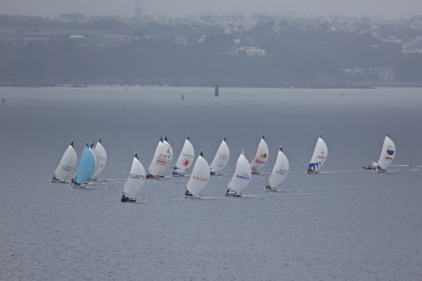 Ils ont tenté une option sud au passage de l’archipel des Glénan. Anticipant une légère bascule du vent vers l’ouest, les duos Douguet/Troël (NF Habitat) et Hardy/Ruyant (Agir recouvrement) espéraient bénéficier d’un meilleur angle pour l’atterrissage sur Larmor-Plage. La brise n’en a pas voulu ainsi. Respectivement 2e et 3e au général d’hier, ils sont ce soir 7e et 9e. Décevant, mais pas irrémédiable.