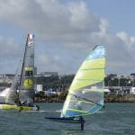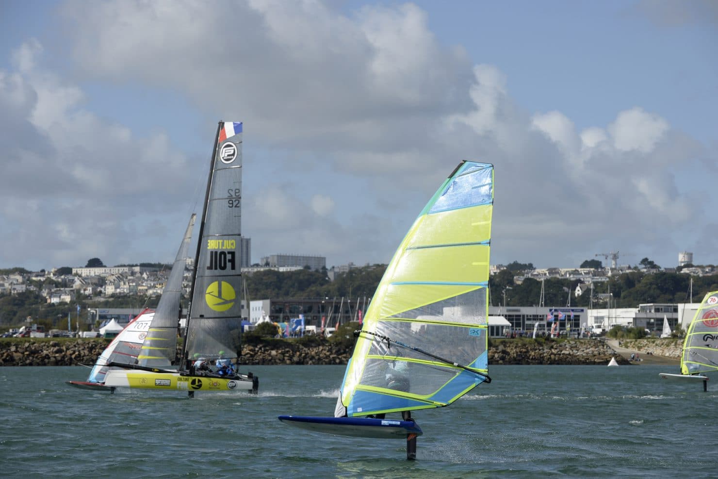 Sur le village installé au cœur du port du Moulin Blanc, entre les food-trucks et jeux pour enfants, petit détour par le stand Exocet pour y retrouver Patrice Belbeoc’h, son créateur et dirigent. « Avec les foils, au lieu de toucher l’eau, on vole » explique l’ancien champion du monde vagues de planche à voile. « Les foils sont des appendices en carbone qui permettent à tout ce qui flotte, de justement, ne plus flotter. On ne subit plus le clapot et le courant, et l’on peut filer tout droit à des vitesses très élevées. Dès que l’on arrive à décoller, on n’a pas besoin de puissance et l’on est plus obligé de mettre des voiles énormes. Cela demande quand même une certaine maîtrise même si ça se démocratise de plus en plus. Car on n’en est encore qu’aux prémices du foil et les performances ne vont faire qu’augmenter ». Paroles de connaisseur.