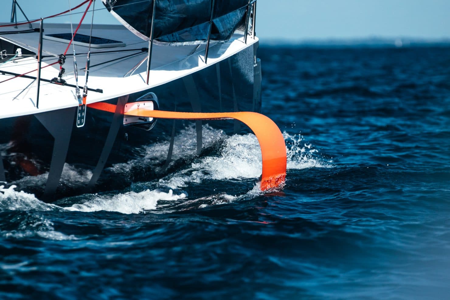 Mis à l’eau n juillet à Saint-Gilles-Croix-de-Vie, le prototype du Figaro Bénéteau 3, dont la construction aura nécessité 3000 heures de travail sur le site Bénéteau de Cheviré, est depuis en phase de tests. Responsables du chantier Bénéteau, architectes, membres du bureau d’études de Mer Forte et représentants de la classe Figaro se sont succédés à son bord pour éprouver dans diverses conditions le plan VPLP de 9,75 mètres, qui sera le premier monocoque monotype de série doté de foils. Cette période de tests s’est achevée mi-septembre, le temps de pro ter d’une dernière semaine dans du vent fort a n de permettre de dé nitivement valider un bateau qui, visiblement, marque un vrai bond technologique. « Les retours sont très positifs, les résultats sont en phase avec ce qu’avait imaginé l’architecte : les foils apportent à la fois une stabilité supplémentaire et un phénomène de sustentation, ce qui rend le bateau très équilibré. La douceur et la précision de barre ont surpris tout le monde, c’est un élément très important pour ne pas trop solliciter les pilotes automatiques », constate Eric Ingouf, responsable du programme Figaro 3 chez Bénéteau.