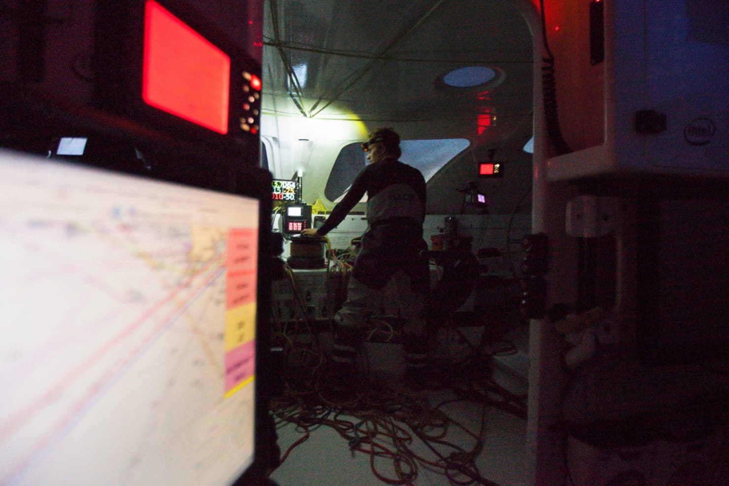 François Gabart : « Je la vis bien, je commence à avoir mes petites routines, à m’occuper du bateau comme je le faisais avec l’Imoca sur le Vendée Globe. Je rentre dans une relation où il n’y a plus que lui et moi, une certaine intimité se crée, un lien fort, qui n’existe pas en équipage et que tu n’as pas le temps d’avoir sur des courses plus courtes. Je ne lui parle pas encore, mais je ne vais pas tarder à lui dire quelques mots. Sinon, la notion de temps ne me pèse pas, les journées s’enchaînent vite. Après, pour le moment, je suis resté dans des contrées où je n’étais pas complètement seul. Dans les semaines qui viennent, il n’y aura vraiment plus personne, peut-être quelques humains qui traînent par-ci par-là vers les îles Crozet et Kerguelen, sinon, c’est quand même un grand désert, mais ça ne me dérange pas plus que ça. »