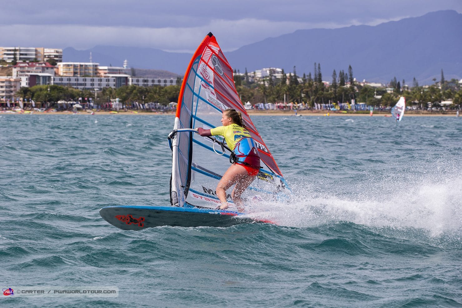 « Ça va cartoucher aujourd’hui ! » commente la Calédonienne Océane Lescadieu face à la mer. 20-25 nœuds ont bien soufflé sur le plan d’eau de l’Anse Vata, forcissant dans le même temps que le ciel s’est découvert au fil de la journée. Pas de windfoil Challenge donc, au vu du vent fort. Les hommes ont couru deux manches et demie, tandis que les femmes, se sont affrontées sur trois manches.