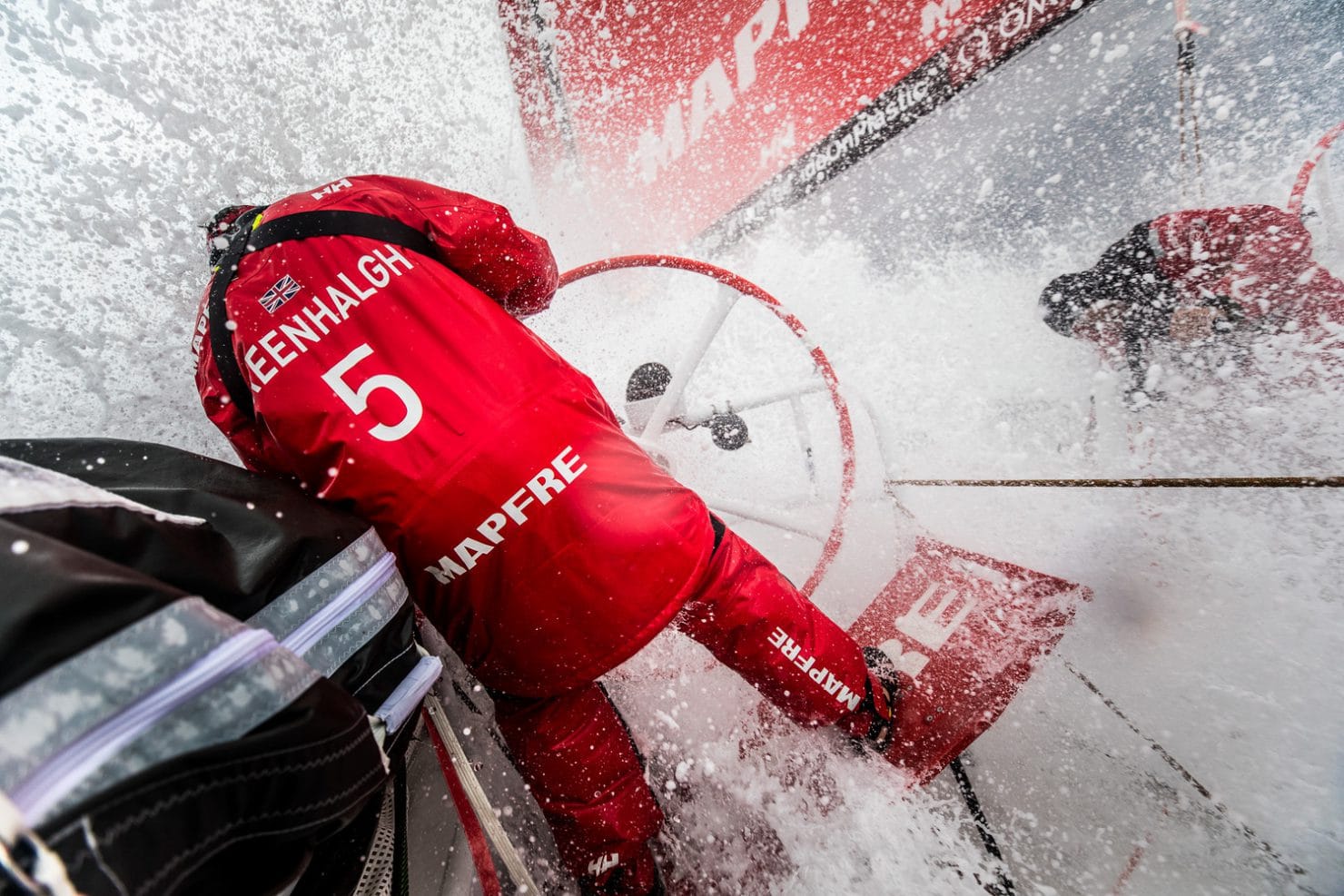 « Depuis l’arrivée de ce nouveau front, on est à fond, » confiait le Kiwi Blair Tuke, lui aussi vainqueur de la dernière America’s Cup, et qui pourrait être le premier marin de l’histoire à enchaîner JO, America’s Cup et Volvo Ocean Race ! « Au début, on a commencé avec des conditions idéales, 25 noeuds de vent, sur une mer plate. Mais durant les dernières heures, la situation s’est légèrement déteriorée. La mer s’est reveillée, on a beaucoup d’eau sur le pont, c’est probablement le plus d’eau que j’ai jamais vu. »