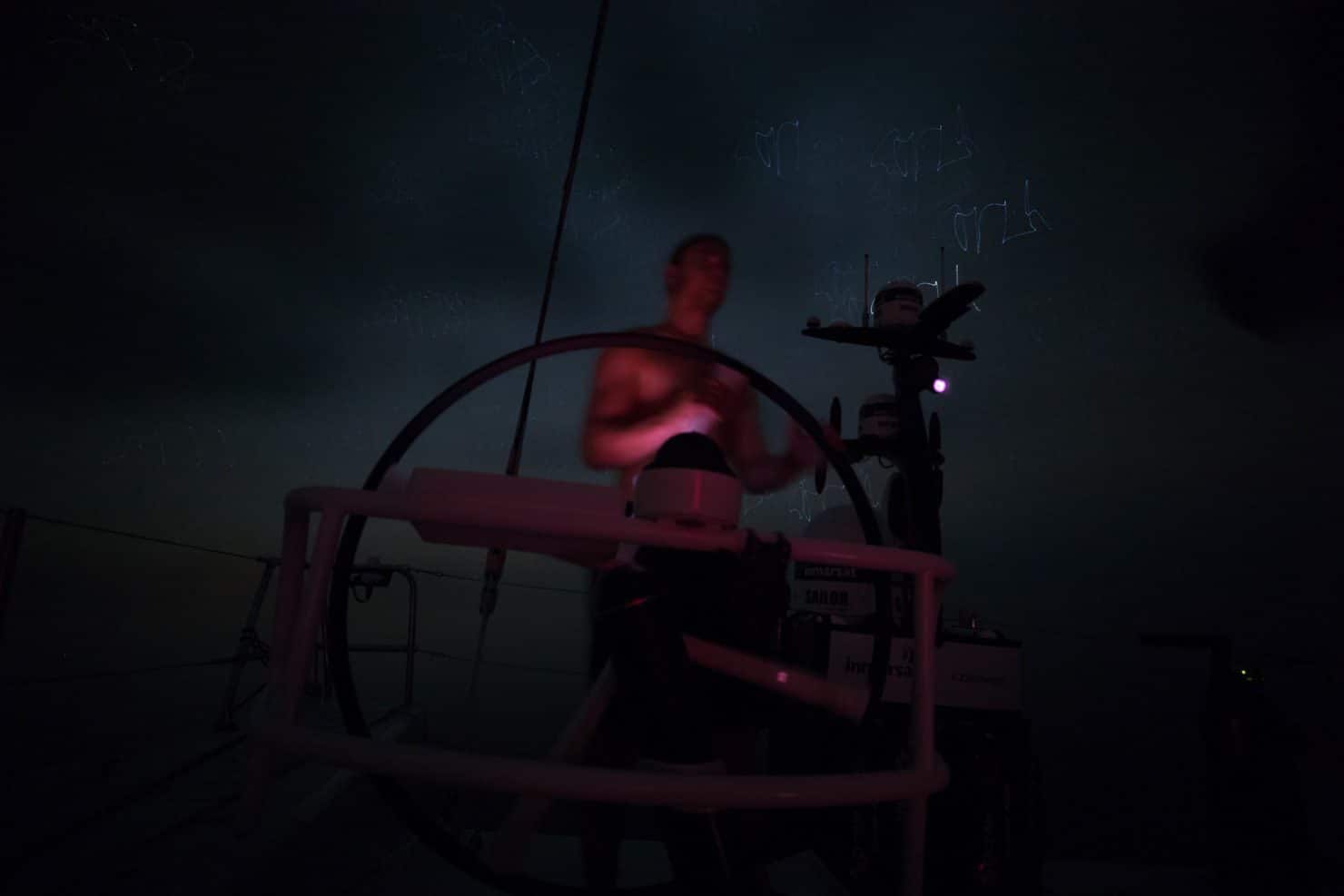 « Hier, nous étions bord à bord avec Brunel pendant la majeur partie de la journée, on a même croisé à quelques mètres devant eux. On était si proche, qu’avec le calme ambiant, on pouvait presque entendre leurs conversations. C’est chouette de voir un autre bateau, mais assez dingue après 4,000 milles… »