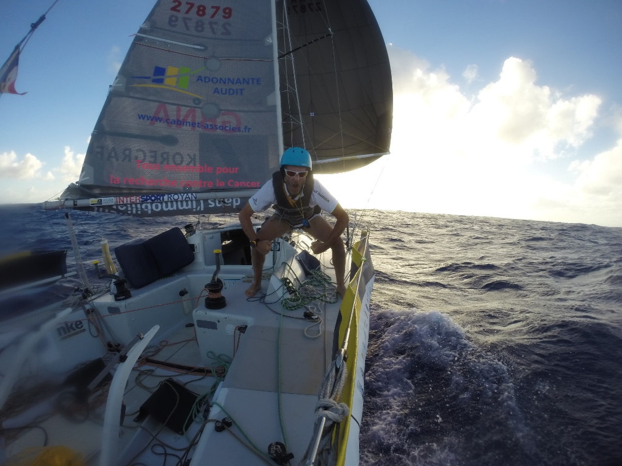 Le skipper Royannais a sans doute pu trouver un compromis pour remettre du charbon dans sa fusée rose, mais les manœuvres à l’approche des Antilles seront sans doute compliquées pour lui…