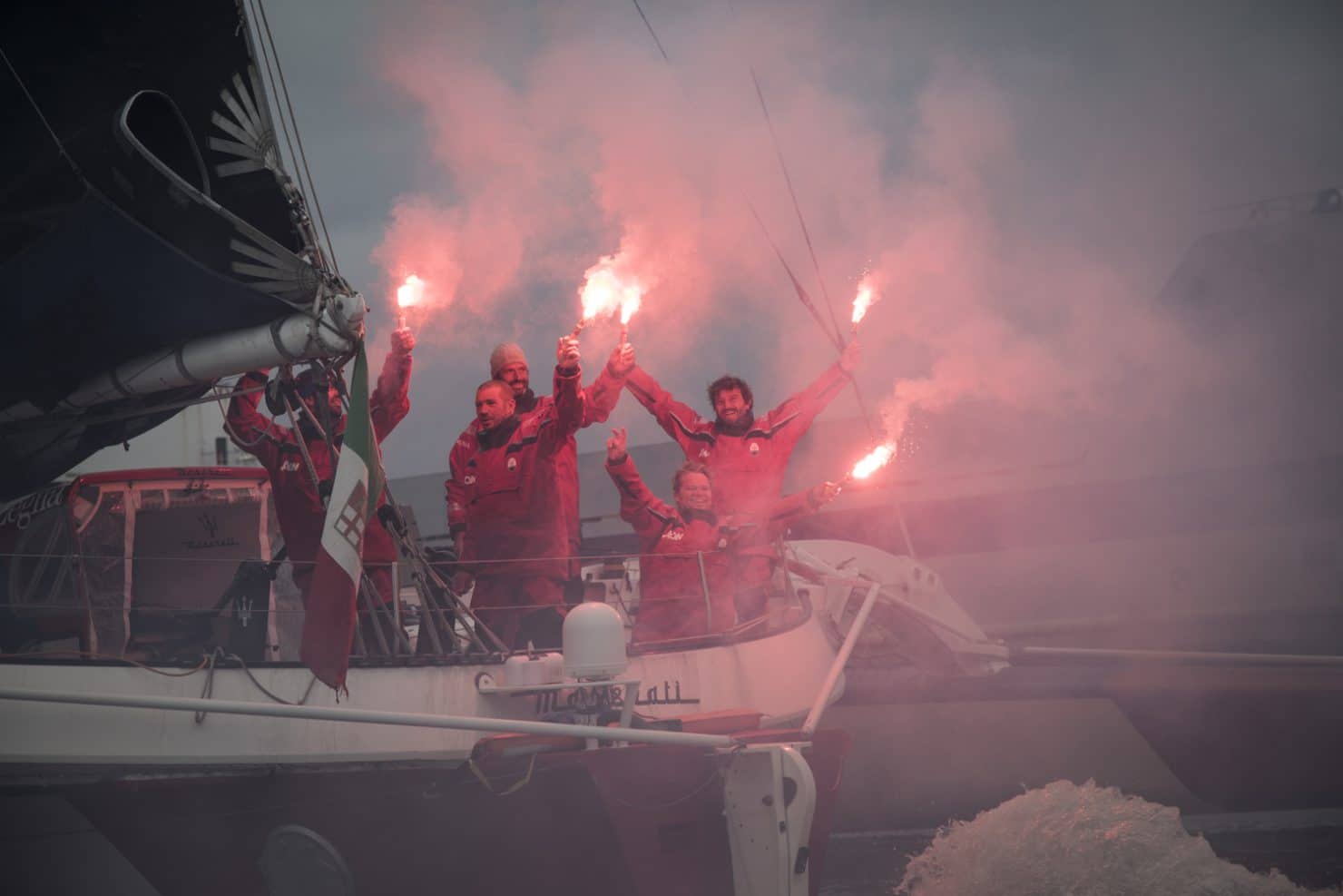 Ils l’ont fait. A 13h20’26” UTC, Maserati Multi 70 a franchi la ligne d’arrivée de la Route du Thé entre Hong Kong et Londres en passant sous le pont Queen Elizabeth II. Giovanni Soldini et l’équipage du trimaran italien composé de Guido Broggi, Sébastien Audigane, Oliver Herrera Perez et Alex Pella ont mis 36 jours, 2 heures, 37 minutes et 2 secondes pour parcourur les 13.000 miles nautiques de la route théorique entre la port chinois et la capitale du Royaume Uni. Ils ont amélioré de près d’une semaine (5 jours et 19 heures) le record précédent de Gitana 13, le maxi catamaran de 100 pieds qui en 2008 avait bouclé le parcours en un peu moins de 42 jours. Le trimaran italien a parcouru en réalité 15.083 miles nautiques à une vitesse moyenne de 17,4 noeuds.