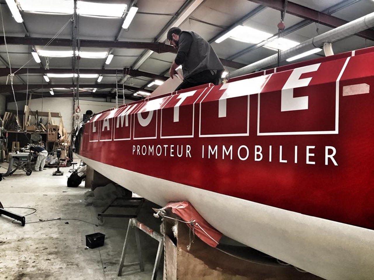 Le 15 mars prochain marque le lancement officiel de cette aventure avec la mise à l’eau du Mach 40 flambant neuf, tout juste sorti du chantier JPS à La Trinité-sur-Mer. C’est l’occasion pour le Groupe Lamotte de rassembler pour la première fois tous les partenaires autour du skipper pour découvrir son nouveau bateau.