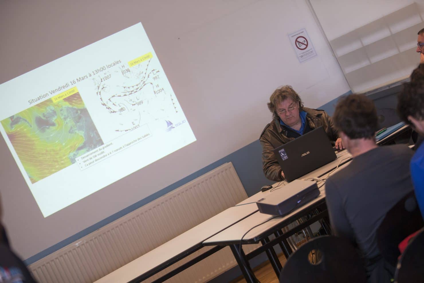« Aux Sables d’Olonne, le port est assez exposé à la mer et notamment à la houle de sud sud-ouest, comme on a là. Ça monte tout de suite. Il y a même un joli spot de surf à la sortie du chenal, c’est dire si ça déferle bien à cet endroit. Dans ces conditions, c’est compliqué pour l’organisation de mouiller une ligne de départ qui tienne avec quatre mètres de houle et des vagues. Ce n’est pas non plus idéal, en termes de sécurité, pour les concurrents. A présent, on sait qu’on va partir sur le même parcours que celui qu’on déjà fait il y a deux ans. C’est un tracé sur lequel il y a largement de quoi faire. 245 milles c’est déjà une belle étape et il y aura tout ce qu’il faut pour ce que soit une belle manche. »