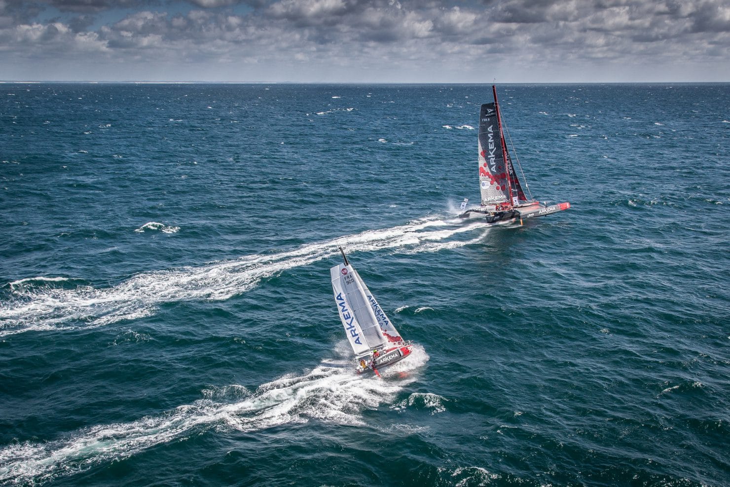 La saison 2018 est également marquée par un nouvel organigramme au sein du Team Arkema Lalou Multi. Skipper du Mini 6.50 aux couleurs d’Arkema 3 pour la Mini Transat 2017, Quentin Vlamynck prend du galon en devenant boat captain du Multi 50 et donc « bras droit » de Lalou Roucayrol. « Mon nouveau rôle consiste à gérer tout le côté technique du bateau, l’entretien, les relations avec les fournisseurs… Bref, il s’agit de soulager l’esprit de Lalou », explique Quentin. À sa plus grande joie, Quentin Vlamynck naviguera très souvent aux côtés de Lalou Roucayrol à l’occasion des convoyages et des entraînements en « faux solo ». Le jeune homme va en profiter pour monter en compétence sur le Multi50, tout en apportant un regard neuf et instructif pour Lalou. Une autre mission de Quentin consiste en la passation du Mini 6.50, désormais entre les mains d’un nouveau skipper…