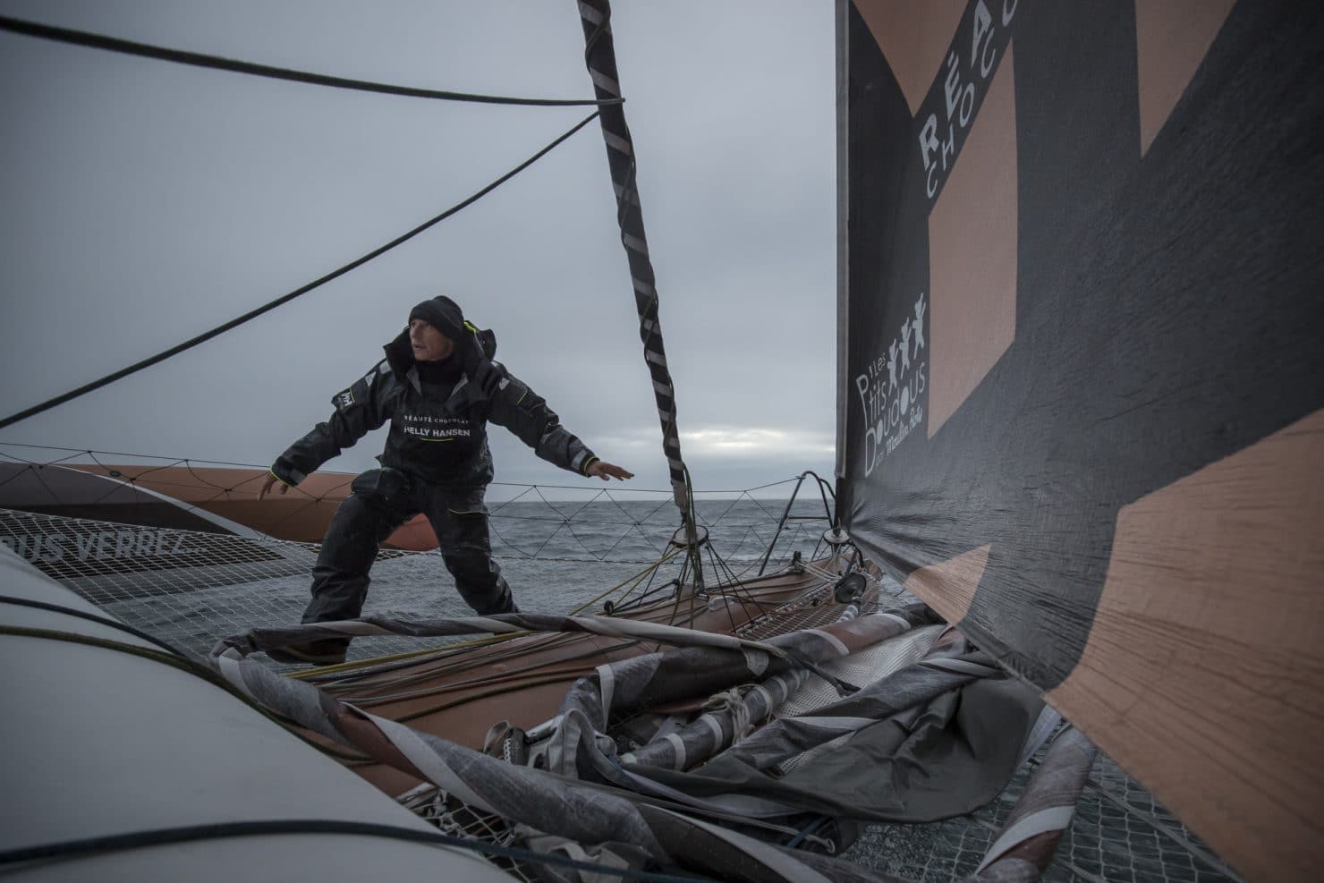 « C’est le printemps, oui, on reprend la compète ! Nous avons choisi de faire un chantier d’hiver assez condensé, sur quelques semaines, afin de pouvoir remettre le bateau à l’eau très tôt, dès le début du mois de mars. L’idée était de pouvoir naviguer en solitaire le plus vite possible puisque, effectivement, nous sommes maintenant totalement concentrés sur l’objectif de la Route du Rhum. Après avoir ramené le bateau par la mer de ce côté-ci de l’Atlantique suite à la Transat Jacques Vabre, nous avons par exemple choisi de rester aux Canaries pour une dizaine de jours d’entraînement en janvier, ce qui a permis de faire du solitaire dans des conditions beaucoup plus maniables que chez nous à cette époque ; mais aussi d’anticiper sur l’ergonomie de bateau, le plan de pont, l’organisation des manœuvres et le type de voiles que je voulais pour la Route du Rhum… Et ça a été hyper profitable ! D’une part parce que j’ai pu m’entraîner beaucoup plus qu’en Bretagne où les dépressions s’enchaînaient et d’autre part parce que cela a permis de gagner beaucoup de temps en anticipant sur le chantier d’hiver. Nous sommes rentrés des Canaries entre deux tempêtes fin janvier et avons condensé le chantier sur un mois et demi. »
