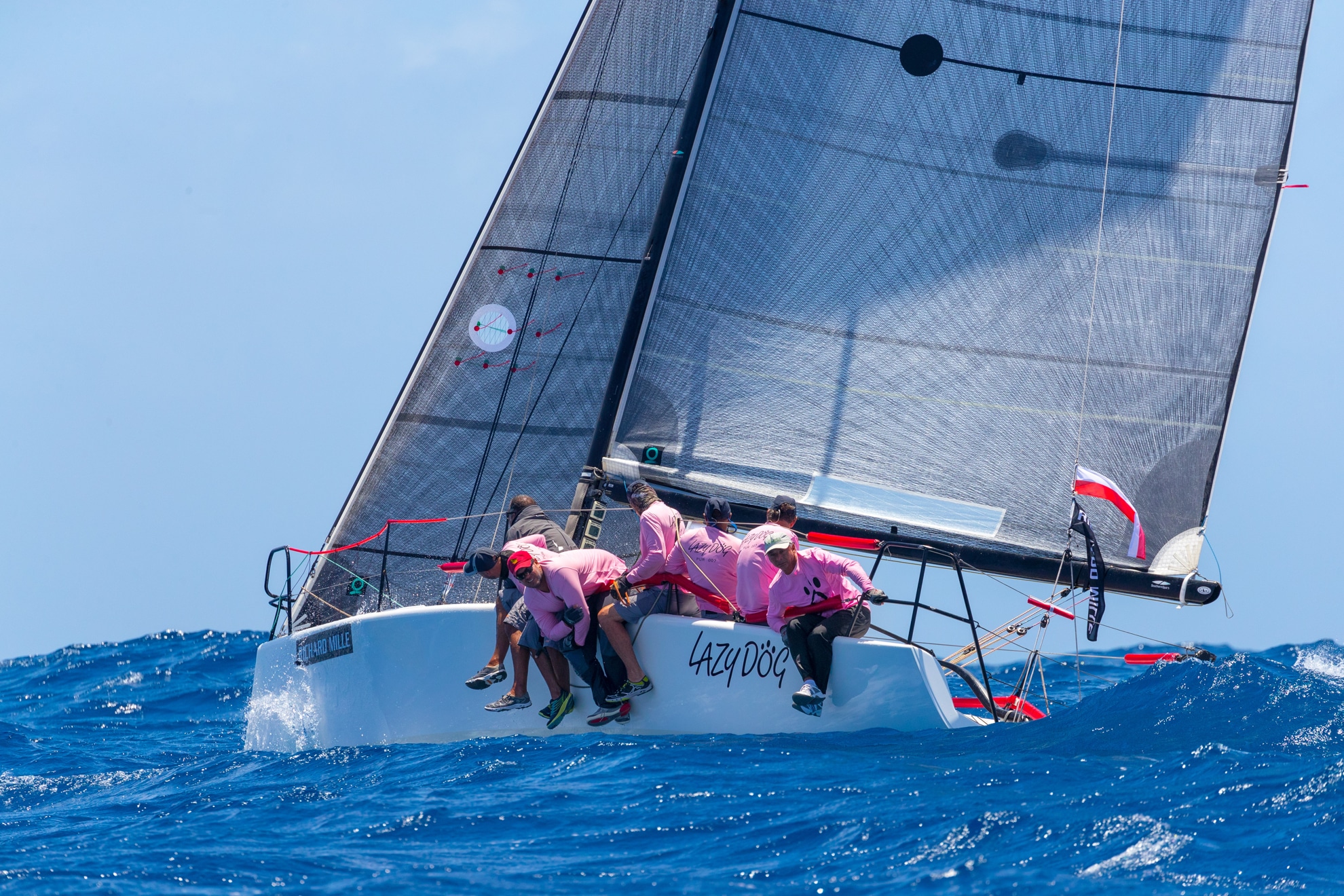 Ce vendredi, quatrième jour de compétition des Voiles de Saint-Barth Richard Mille 2018, les marins ont, une nouvelle fois, bénéficié de conditions proches de la perfection et se sont, une nouvelle fois, livrés à d’incroyables bagarres sur l’eau. A titre d’exemple, chez les Maxi 2, le duel entre Aragon et Windfall est encore montée d’un cran. Ce soir, l’un et l’autre comptabilisent deux victoires et deux deuxièmes places, affichant ainsi une égalité de points parfaite avant le coup d’envoi de la dernière course de la compétition. « Nous avons une chance sur deux de gagner l’épreuve. Nous n’avons pas d’autre choix que de finir devant notre adversaire pour remporter la mise », note Michael Cotter, propriétaire de Windfall, évidemment ravi d’être parvenu à recoller au score aujourd’hui en s’octroyant la victoire dans la régate du jour. « Nous nous sommes imposés aujourd’hui grâce au très bon travail de notre tacticien et de notre navigateur. Ils ont parfaitement joué les placements entre les petites îles sans multiplier les manœuvres, ce qui nous a fait gagner un temps précieux. Il faudra qu’ils soient aussi bien inspirés demain pour que nous puissions inscrire notre nom une nouvelle fois au palmarès des Voiles », a ajouté l’Irlandais, tenant du titre. Cette ultime manche ne sera pas seulement déterminante pour lui et ses hommes. De fait, les dés sont encore loin d’être jetés dans la plupart des classes. Pour preuve, chez les CSA 3, seul un petit point sépare les deux leaders actuels, Team Island Water World (Frits Bus) et Crédit Mutuel – PTO (Claude Granel – Marc Emig). Idem du côté des OMA entre Flow (Stephen Cucchiaro) et R-Six (Robert Szustkowski et Robert Janecki) mais aussi des CSA 1 entre Conviction (Steve Travis) et Lazy Dog (Sergio Sagramoso). « Nous n’avons pas droit à l’erreur pour gagner car nous avons grillé notre joker lors du premier jour. Nous avons eu un peu peur aujourd’hui car nous avons éclaté deux génois pendant la course mais au final, nous sommes tout de même parvenus à gagner. Tout va un peu dépendre du parcours qui nous sera proposé demain car s’il y a beaucoup de portant, nous aurons probablement du fil à retordre avec le Melges 32 des Porto Ricains », a indiqué Steve Travis, le skipper du TP52 Américain.