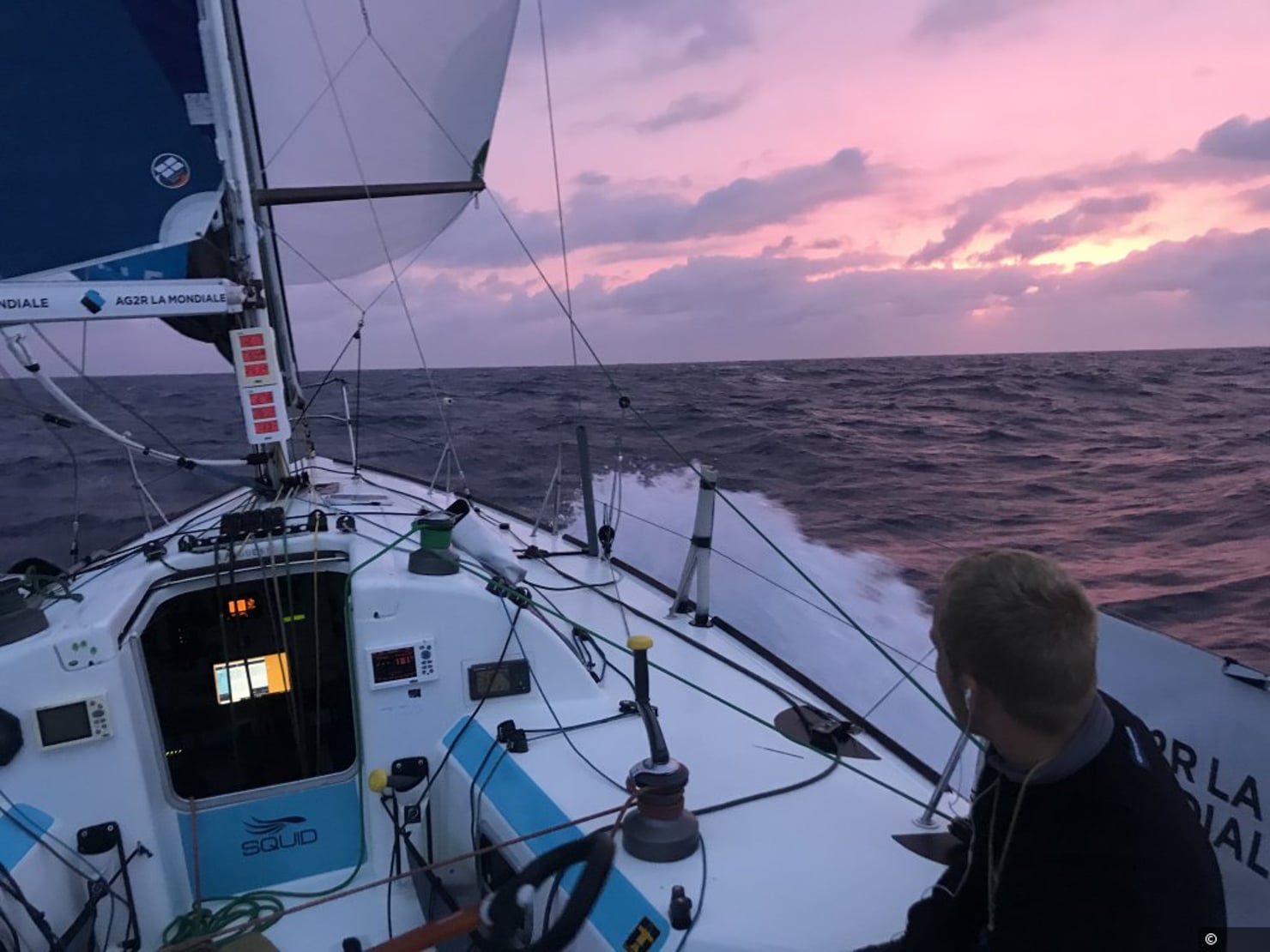« Le ciel est très bouché, il fait nuit noire. Nous ne voyons pas grand-chose. Nous avons encore 25 nœuds mais globalement c’est un alizé correct. Les Nordistes sont venus se caler devant nous. C’est bien joué. Ça va être compliqué de rattraper les tous premiers car ils ont déjà 80 milles d’avance. Par contre, nous sommes en contact avec plusieurs bateaux comme Surmfit Kappa-Cerfrance, Bretagne CMB Espoir, TeamWork… On va enclencher le jeu des empannages pour se recaler. Il faudra manœuvrer au bon moment et au bon endroit. D’ici deux-trois jours, on va commencer à faire des empannages : or selon les grains et les angles que nous faisons, la vitesse est différente. Ça se passe très bien à bord, on fait des quarts selon la fatigue, mais nous sommes un peu usés. »