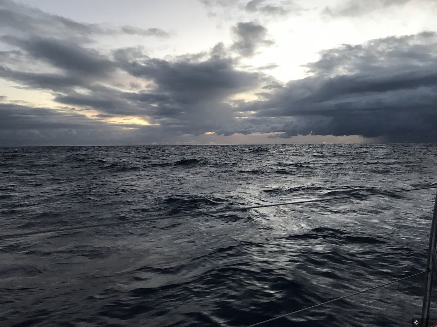 Ça tricote, ça empanne, ça se recale, ça s’en va et ça revient… Pas facile d’y voir clair à peine à trois jours de l’arrivée à Saint-Barthélemy ! Incontestablement, les alizés qui soufflent désormais régulièrement en force sur la flotte n’ont pas franchement basculé à l’Est : le temps du recadrage n’est pas encore tout à fait venu… Il y a des oscillations, des lignes de grains, une couverture nuageuse peu habituelle et donc plus de difficulté à lire le ciel et à en tirer des enseignements. Quant aux fichiers météo, ils laissent toujours planer le doute sur cette bascule à l’Est tant attendue et qui ajoute de l’incertitude sur la validité des options : au Nord, au Sud, au centre ?