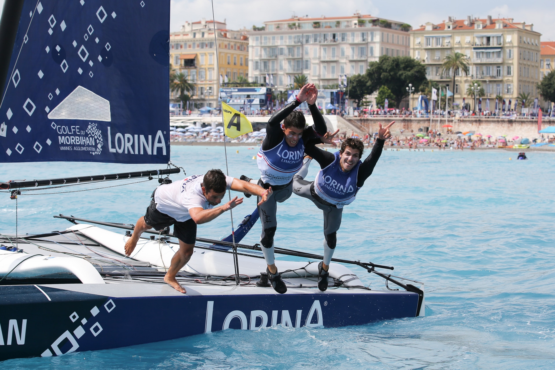Lorina Limonade Golfe du Morbihan, Beijaflore : ils ne se sont pas lâchés depuis le début de 41e Tour Voile, le 6 juillet à Dunkerque. Au terme de 15 jours de course (5 Raids Côtiers, 10 Stades Nautiques), c’est ce dimanche, devant la promenade des Anglais, que s’est jouée la victoire à l’occasion de la Super Finale, dont les points comptaient double et qui réunissait les dix meilleurs équipages. Pour les hommes de Beijaflore, la donne était la suivante : pour gagner le Tour, ils devaient absolument finir devant leurs concurrents de Lorina Limonade Golfe du Morbihan, en intercalant au moins un bateau entre eux.