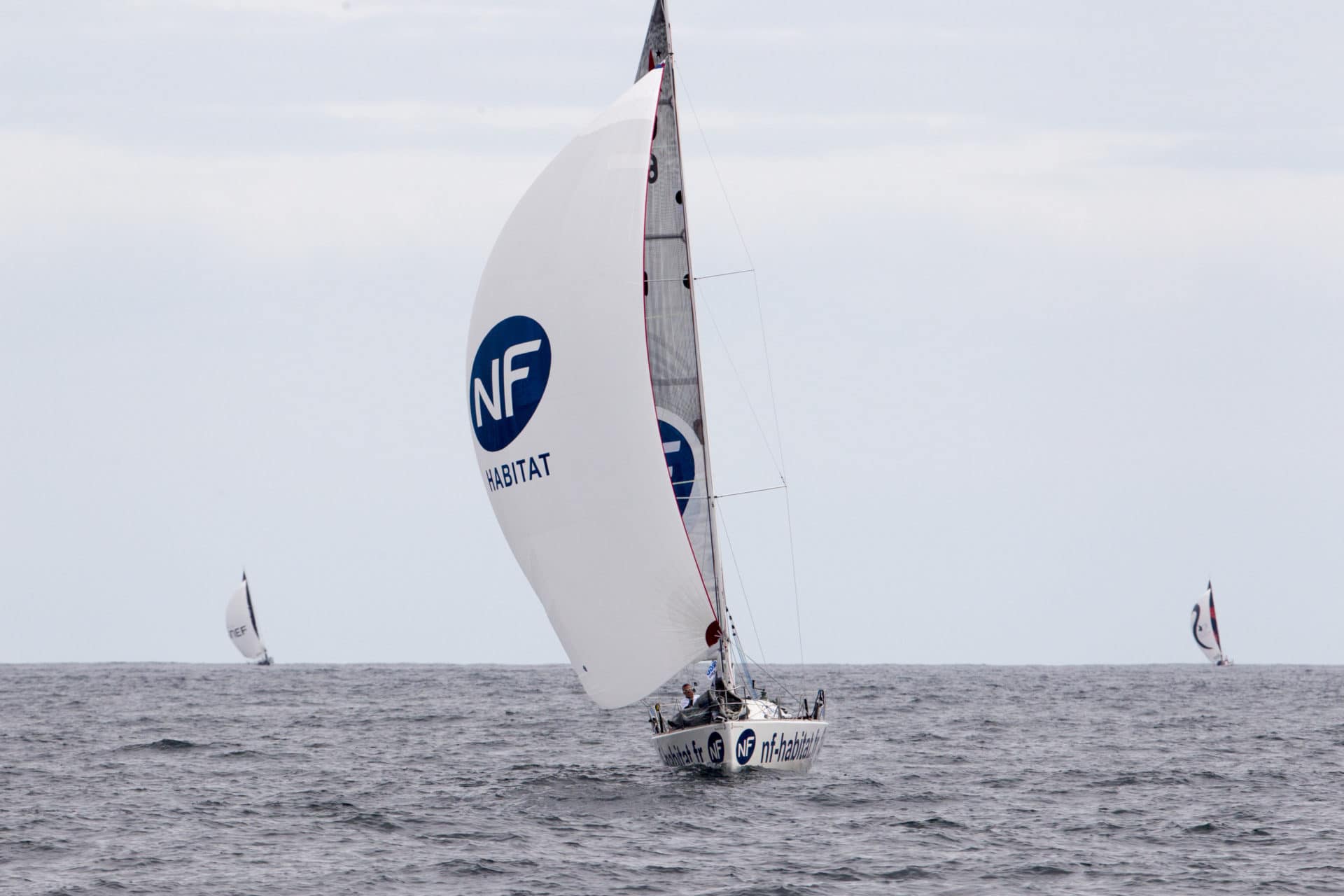 Oubliés donc le louvoyage en Cornouaille, les spis qui battent dans la houle et les coups fourrés de la côte anglaise ? Pas si sûr, car le passage de Portsall dans un vent imprévisible peut s’avérer piégeux. En attendant, c’est un Britannique qui a pris les devants cette nuit en route vers la Bretagne. Après son bon passage en troisième position à Wolf Rock, Alan Roberts a su glisser plus vite que ses camarades, d’abord au près, puis sous spi et à nouveau sous génois. Son Seacat Services pointe d’une courte tête ce matin devant Xavier Macaire (Groupe SNEF) et Sébastien Simon (Bretagne CMB Performance) avec Anthony Marchand (Groupe Royer-Secours populaire) juste dans son axe. Satisfait, le skipper reste très vigilant : “Le vent est vraiment irrégulier, il y a beaucoup d’algues et il faut être très attentif aux réglages”.
