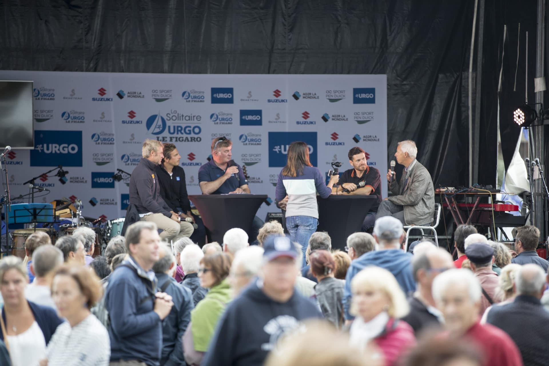 Heureusement, la météo très agréable sur la Baie de Saint-Brieuc permet de travailler dans d’excellentes conditions sur les pontons. A l’approche d’une traversée du golfe de Gascogne annoncée plutôt clémente pour la semaine prochaine, l’ambiance est très détendue sur le Port du Légué et le public peut profiter des marins, revenus en masse sur les bateaux.