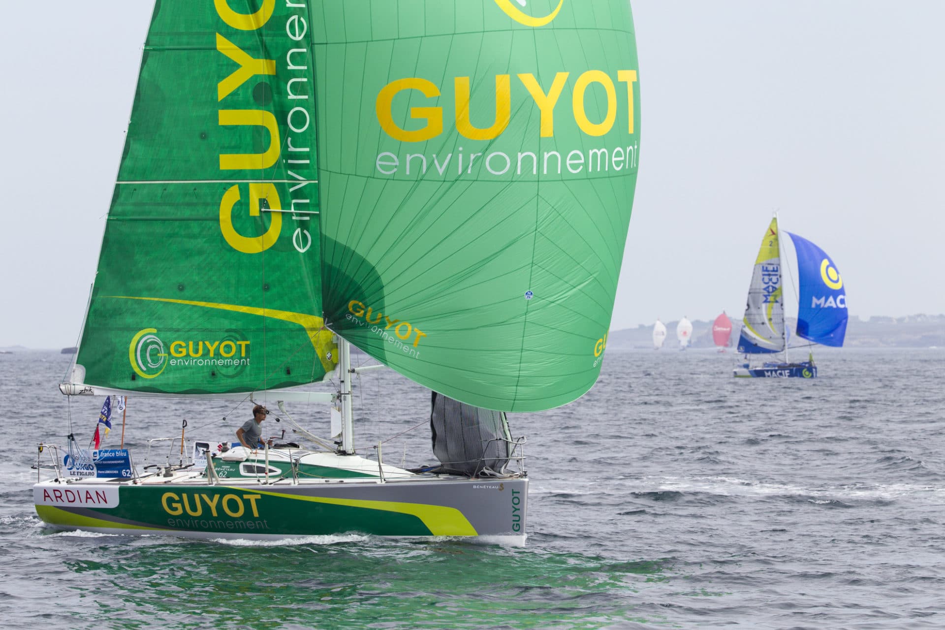 Pendant plus de deux heures, c’est Pierre Leboucher qui prenait les commandes de la course en distance au but. Le skipper de Guyot Environnement très à l’aise sous spi dans les petits airs avouait « ne pas bien connaître ces passages en mer d’Iroise. J’ai du mal à avoir une stratégie définitive alors je reste au contact de la flotte ! ». Ce n’est pas le cas d’Anthony Marchand qui lui brûlait la politesse au passage du Béniguet dans l’ouest de Molène, obliquant adroitement pour rejoindre la route directe vers l’Espagne.