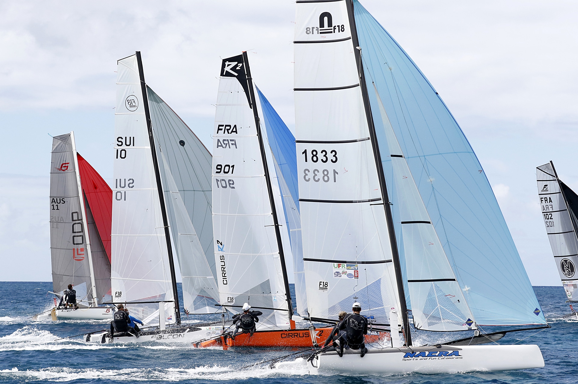 Après un bord au près pour aller chercher une bouée au fond de la baie de Fort de France, un dernier bord de spi ramène les concurrents à la ligne d’arrivée devant Schoelcher. Malgré un déssalage peu avant la ligne et un spi déchiré Martin/Gaté conserve la 3eme place derrière Gurvan Bontemps/Frédéric Moreau et Jean et Emmanuel Boulogne.